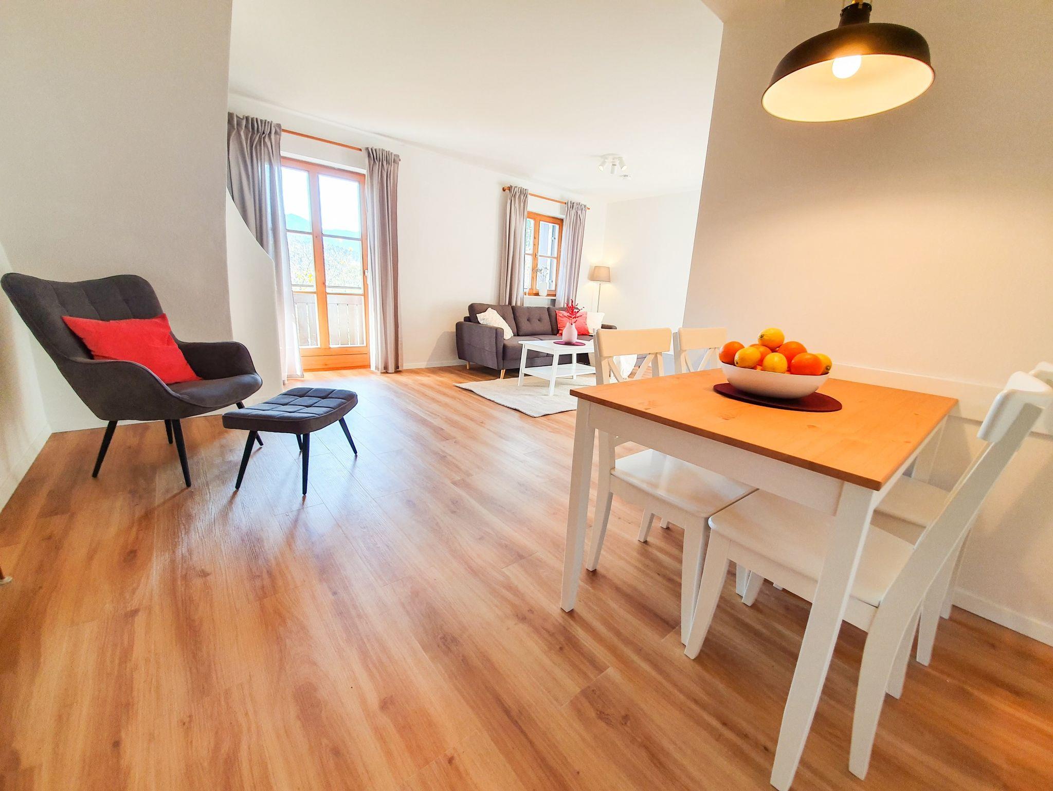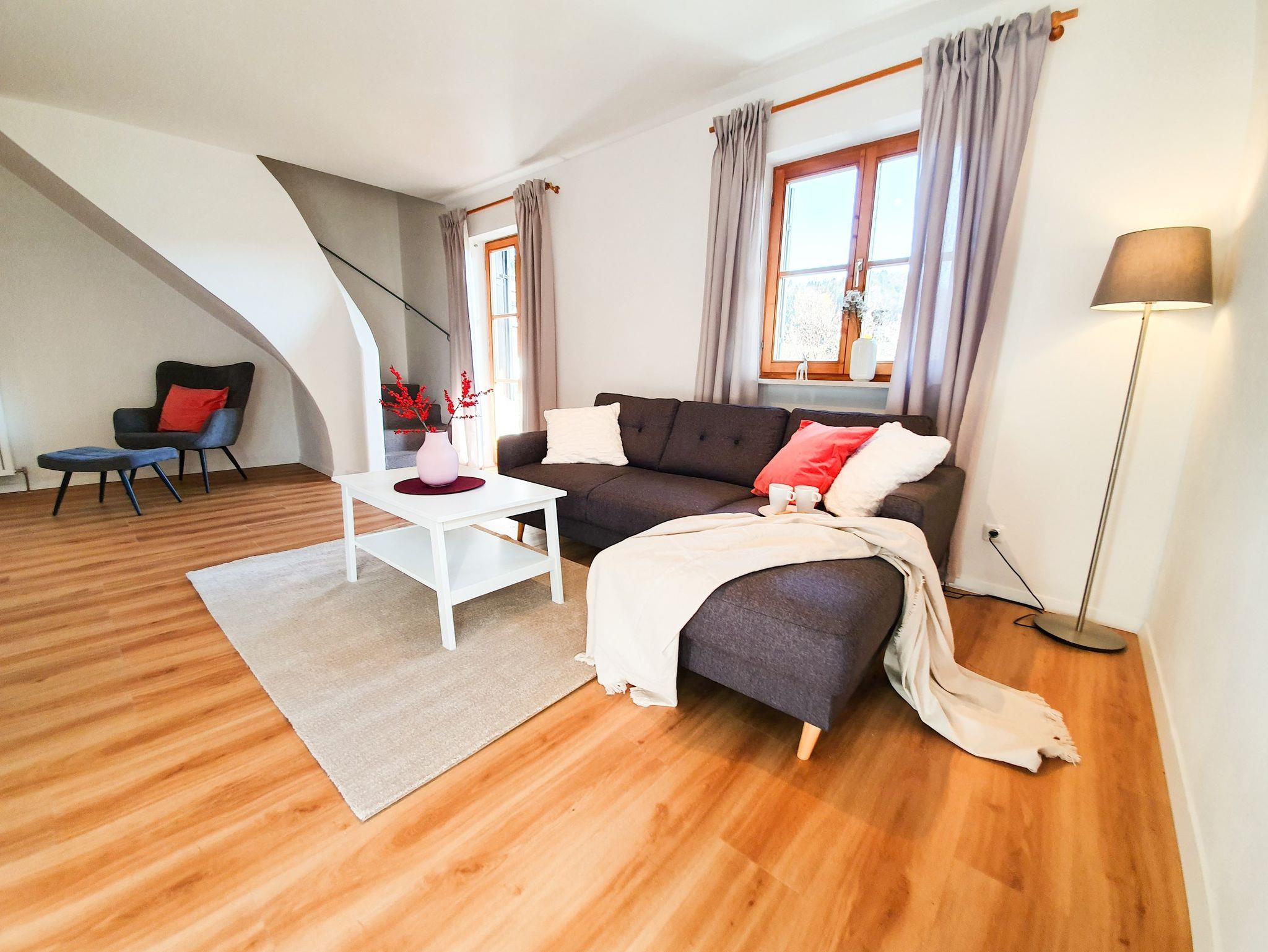 Die vollständig renovierte Maisonettewohnung liegt zwischen dem Chiemsee und Salzburg. Sie befindet sich im 1. OG einer schönen Wohnanlage kurz vor Inzell.