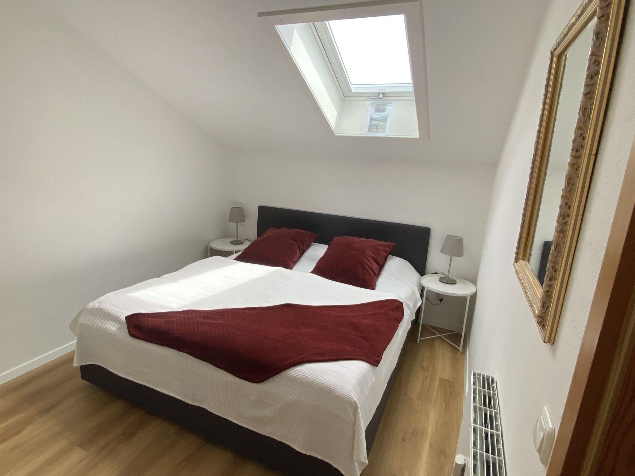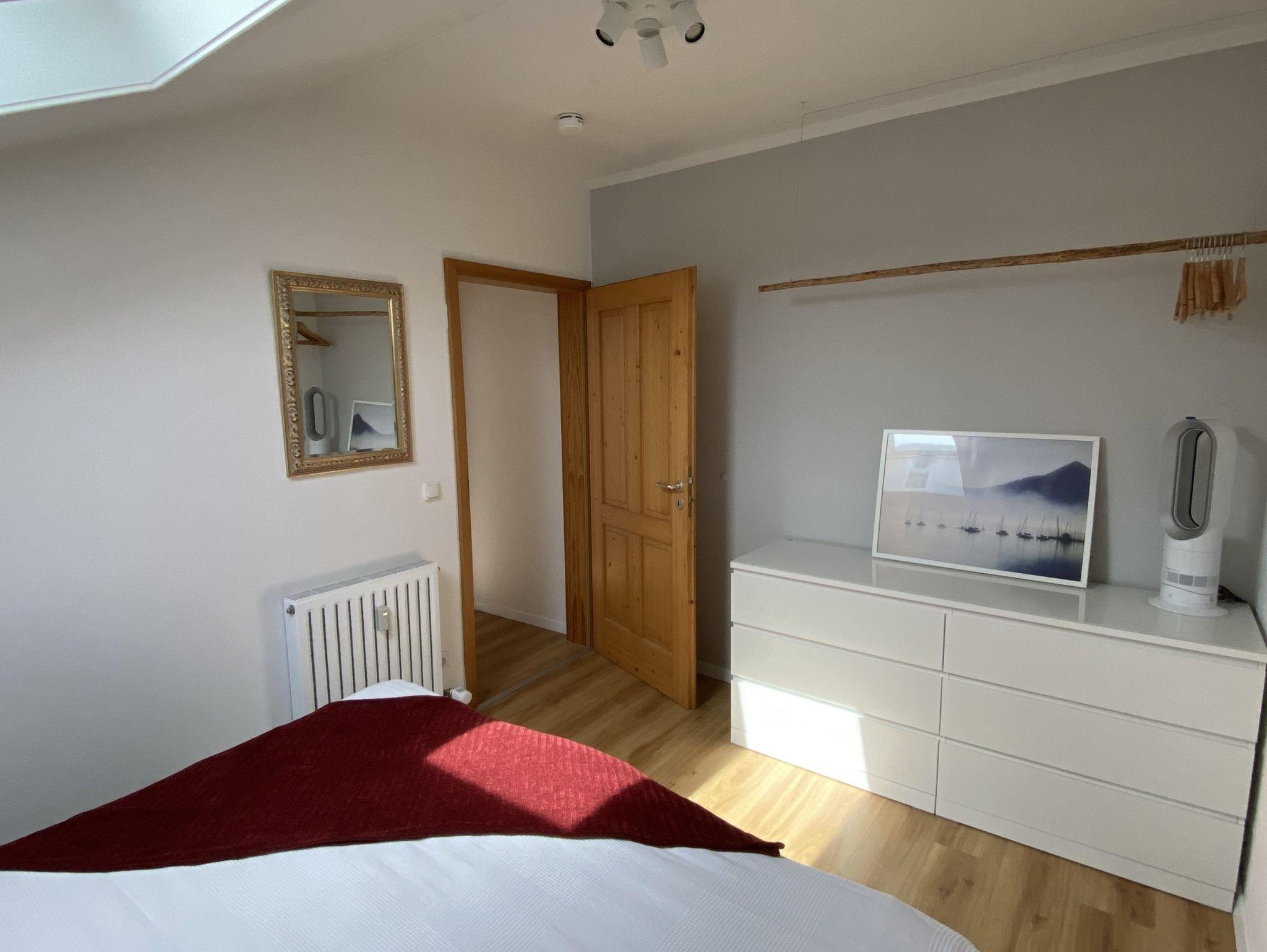 Neben dem großzügigen Wohnzimmer mit 2 Balkonen finden Sie in der unteren Etage eine komplett ausgestattete Küche, einem Essbereich sowie ein Duschbad mit Fußbodenheizung. Im oberen Stockwerk sind die zwei Schlafzimmer mit Doppelbetten a 180x200 und 140x200 cm. Beide Schafzimmer wurden mit neuen Fenster mit Sonnenschutzfolien und Ventilatoren ausgestattet.