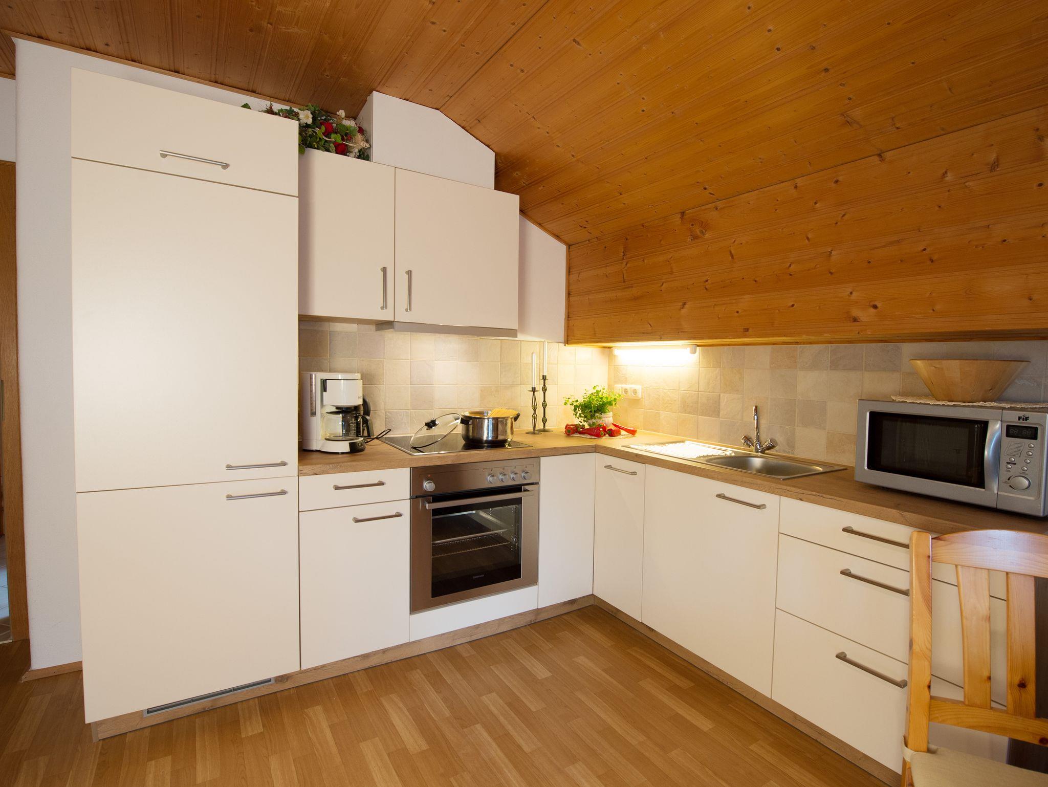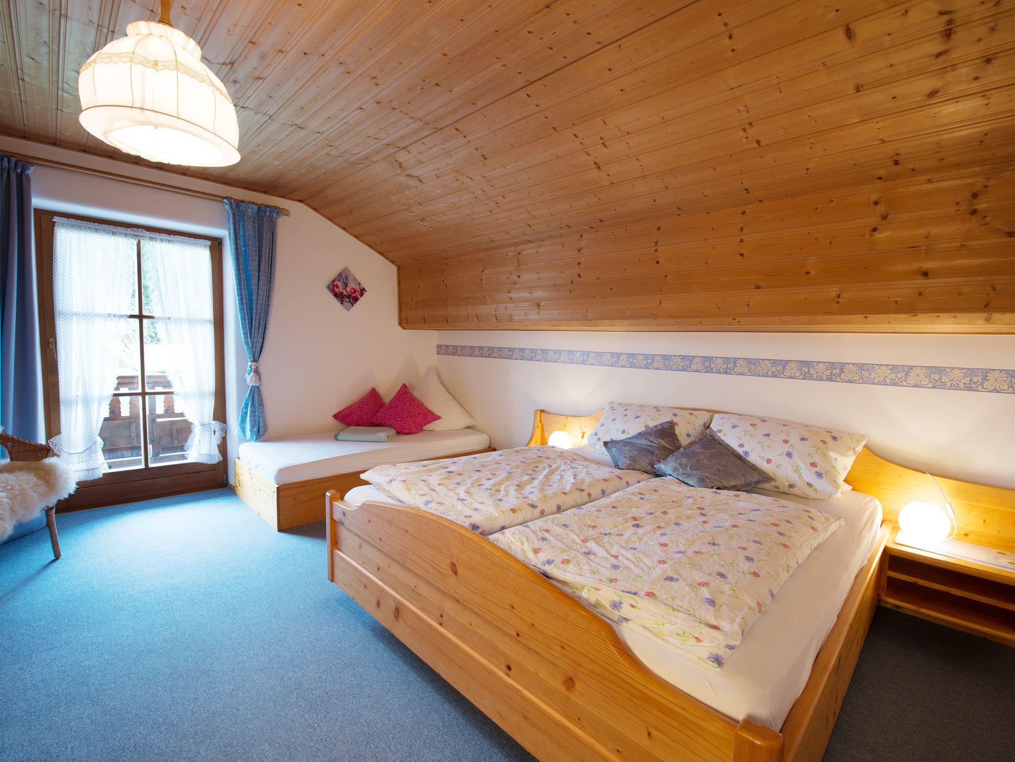 Die gemütliche Wohnung befindet sich im zweiten Stock des Bauernhofes und verfügt über einen Ostbalkon. Sie beinhaltet zwei separate Schlafzimmer (ein Schlafzimmer mit Doppelbett plus einem Einzelbett, sowie ein Kinderschlafzimmer mit zwei Einzelbetten), Wohnküche, Sat-TV, Dusche/WC und einem kleinen Flur.