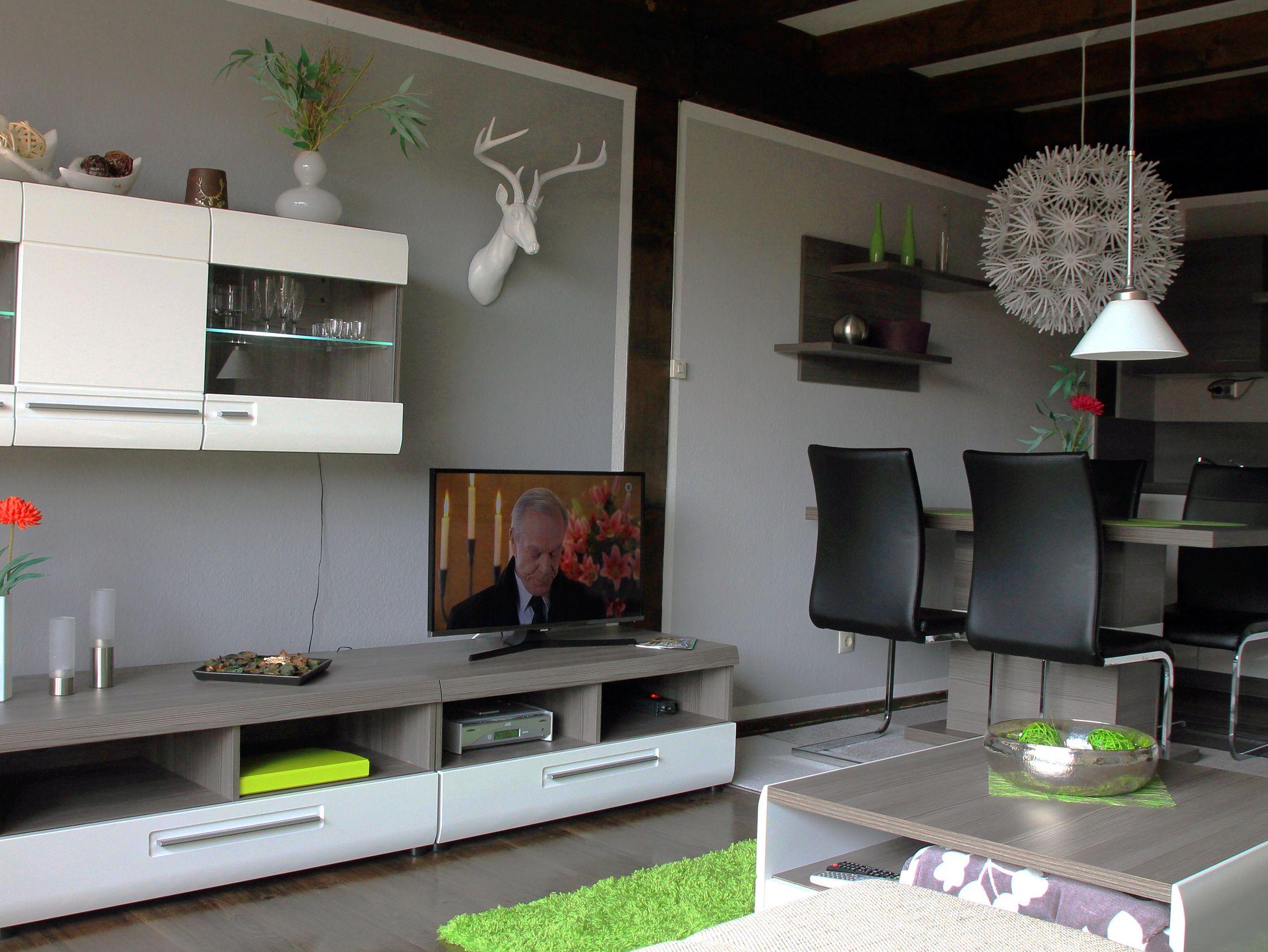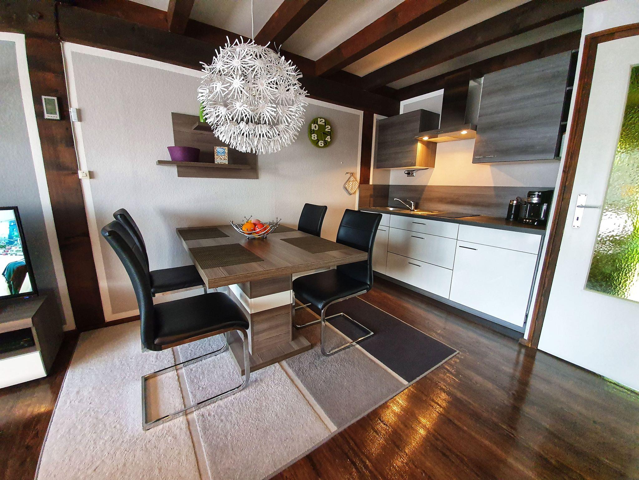 Die Ferienwohnung besitzt einen Wohnraum (30 m²) mit gemütlicher Couch, einem Esstisch mit vier Stühlen, einer Kochnische mit Kühlschrank/Gefrierfach, Spülmaschine, einem 2er Induktionskochfeld und diversen Küchengeräten (Thermomix TM5, Kaffeefilter- & Kaffeepadmaschine, Milchaufschäumer, Waffeleisen & Sandwichmaker, Heißluftfritteuse, Toaster, MINIbackofen, Mikrowelle, Eierkocher, Rührgerät, Stabmixer, Wasserkocher).
