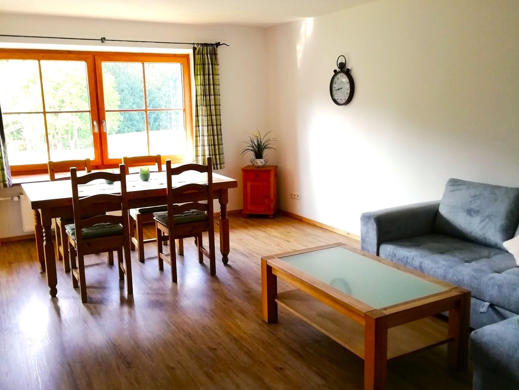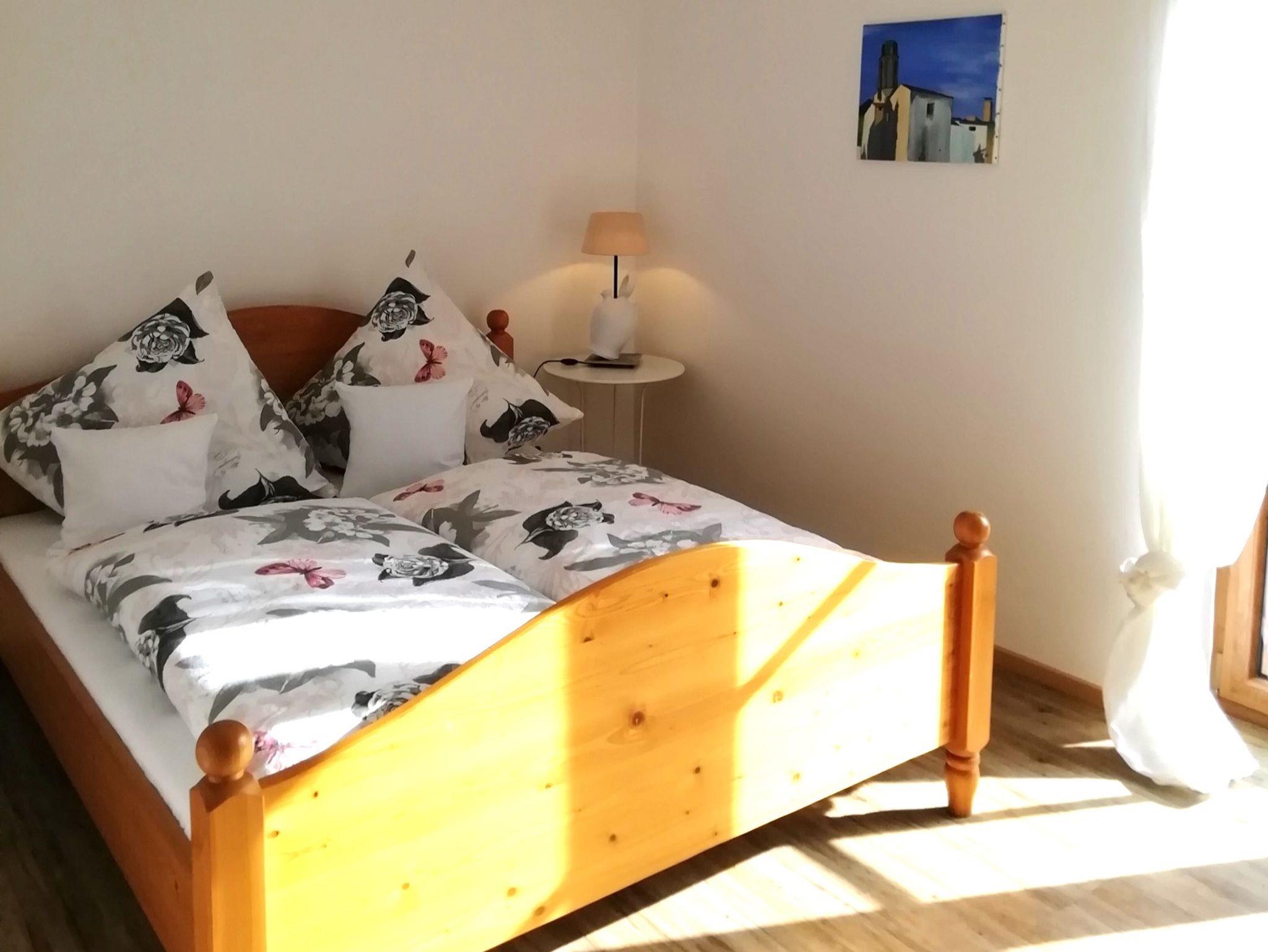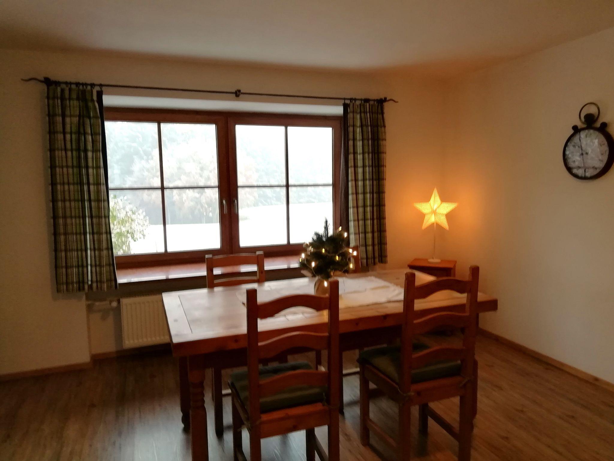 Herzlich Willkommen in unserer komplett eingerichteten, mit 100qm sehr geräumigen Ferienwohnung inklusive Bettwäsche und Handtücher. Die Wohnung bietet Wohnbereich mit Flachbild-TV und Sattelitenempfang. Die vollausgestattete Küche hat Backofen, Geschirrspülmaschine, Toaster, Kühlschrank mit Tiefkühlfach, Wasserkocher, Kaffeemaschine sowie eine Essbereich. Das Badezimmer hat eine Badewanne, Dusche, Haartrockner. Die Wohnung hat zwei Schlafzimmer, das erste mit 20qm und ein Bett 1,80x2,00 Meter, das zweite Schlafzimmer ist 14qm groß und hat ein Bett 1,60x2,00 Meter. Vom Balkon der Wohnung kann man dank der ruhigen Lage den Bergblick, die Sonne und den Blick in Garten und umliegende Natur in vollen Zügen genießen. Grillmöglichkeit im Garten vorhanden. Das Rauchen ist auf dem Balkon erlaubt, in der Wohnung allerdings nicht. Auch Motorradfahrer und E-Biker sind bei uns herzlich Willkommen. Familie Gimpl freut sich auf euch!