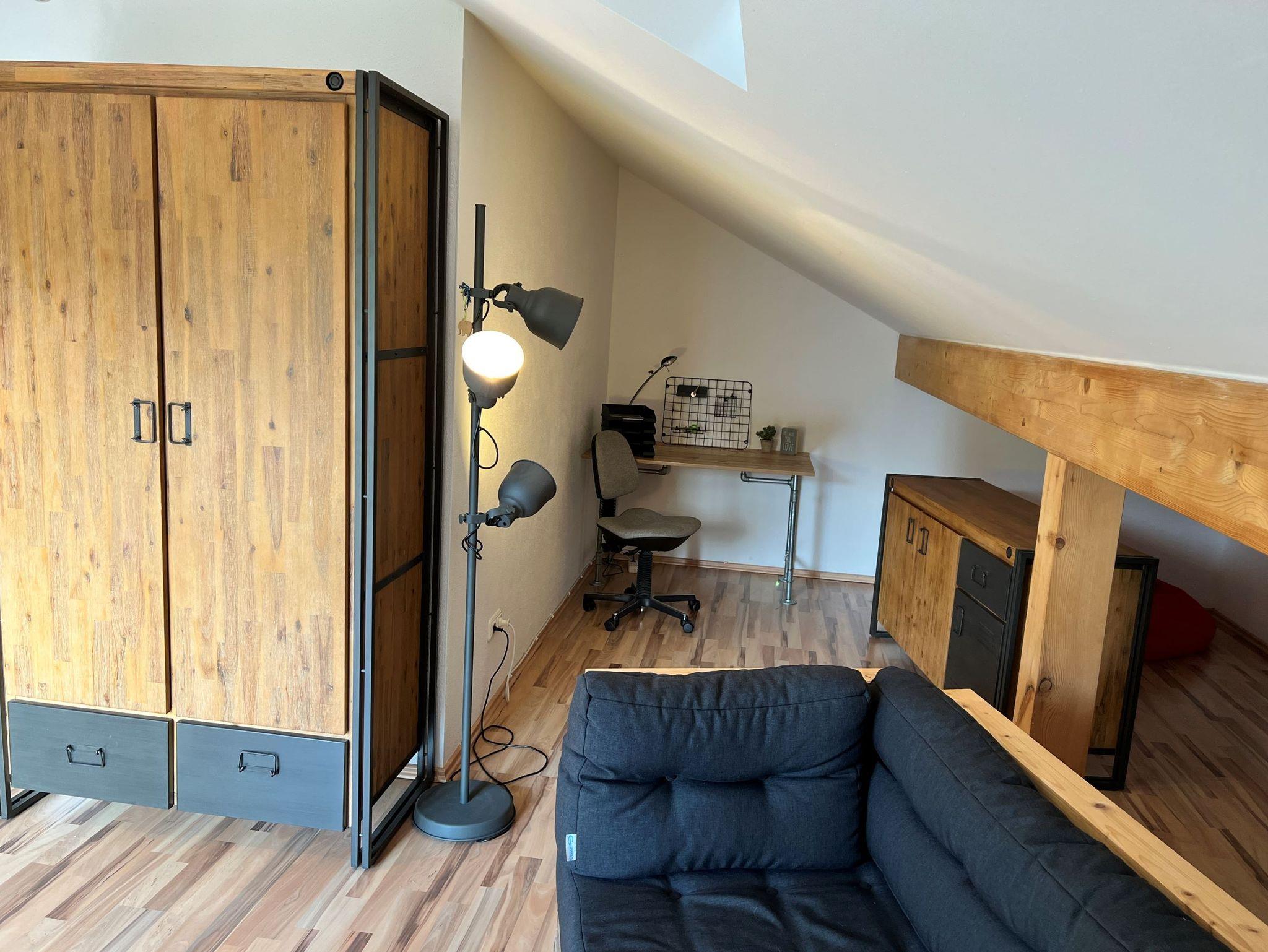 Die Doppelhauhälfte ist an allen drei Seiten von einer Wiese umgeben und bietet somit während des Aufenthalts größtmögliche Erholung und Ruhe. Im Erdgeschoss befindet sich ein WC, Küche und ein großzügiger Wohn Essbereich mit Naturholzboden. Im ersten Obergeschoss befindet sich ein Schlafzimmer mit 25qm und Balkon, ein Schlafzimmer mit 14qm sowie ein schönes Badezimmer. Im Dachgeschoss befindet sich das Studio mit 25qm, Balkon inkl. Schreibtisch und Sofa. Alle Schlafzimmer sind mit großzügigen Doppelbetten ausgestattet.