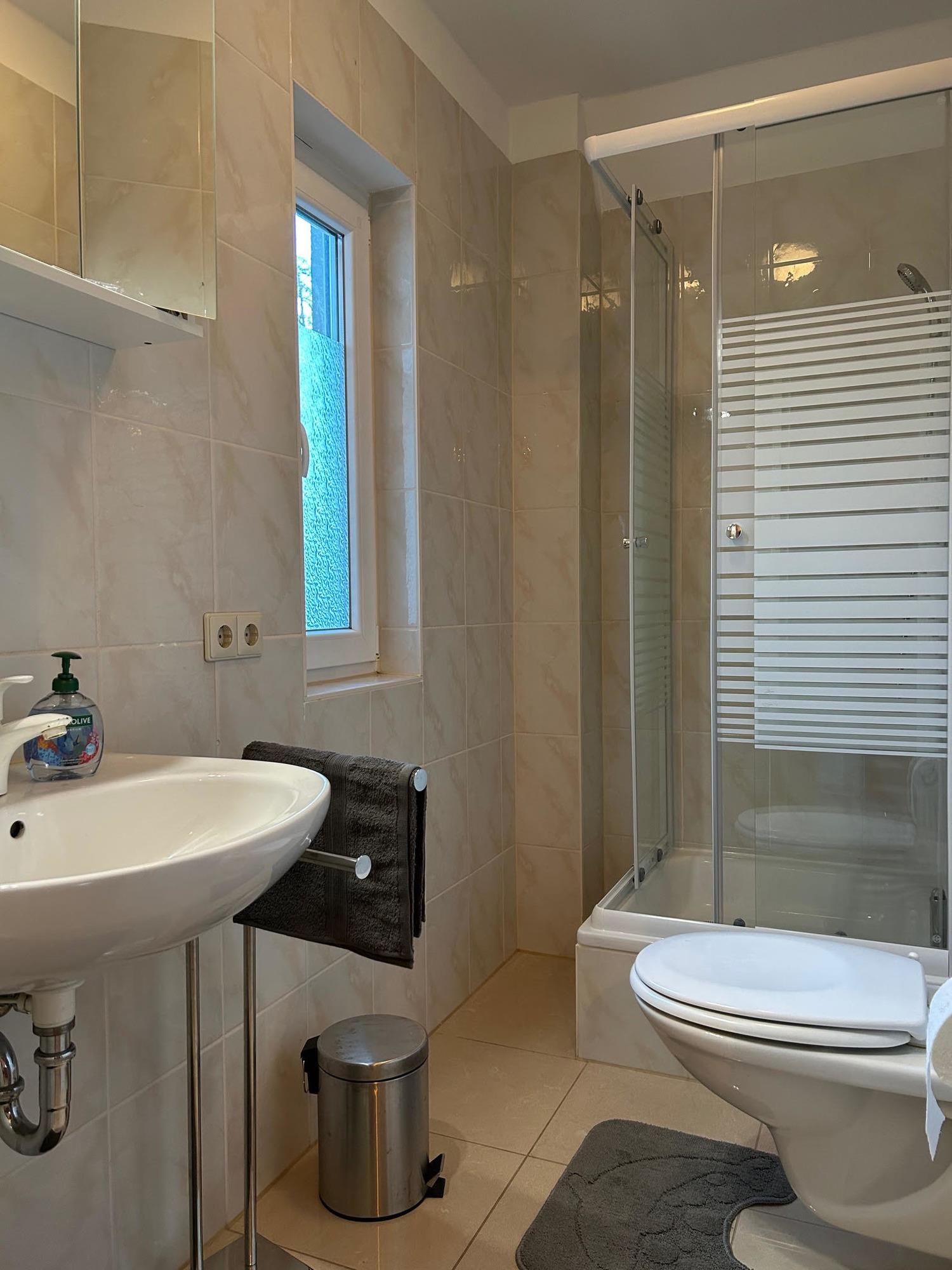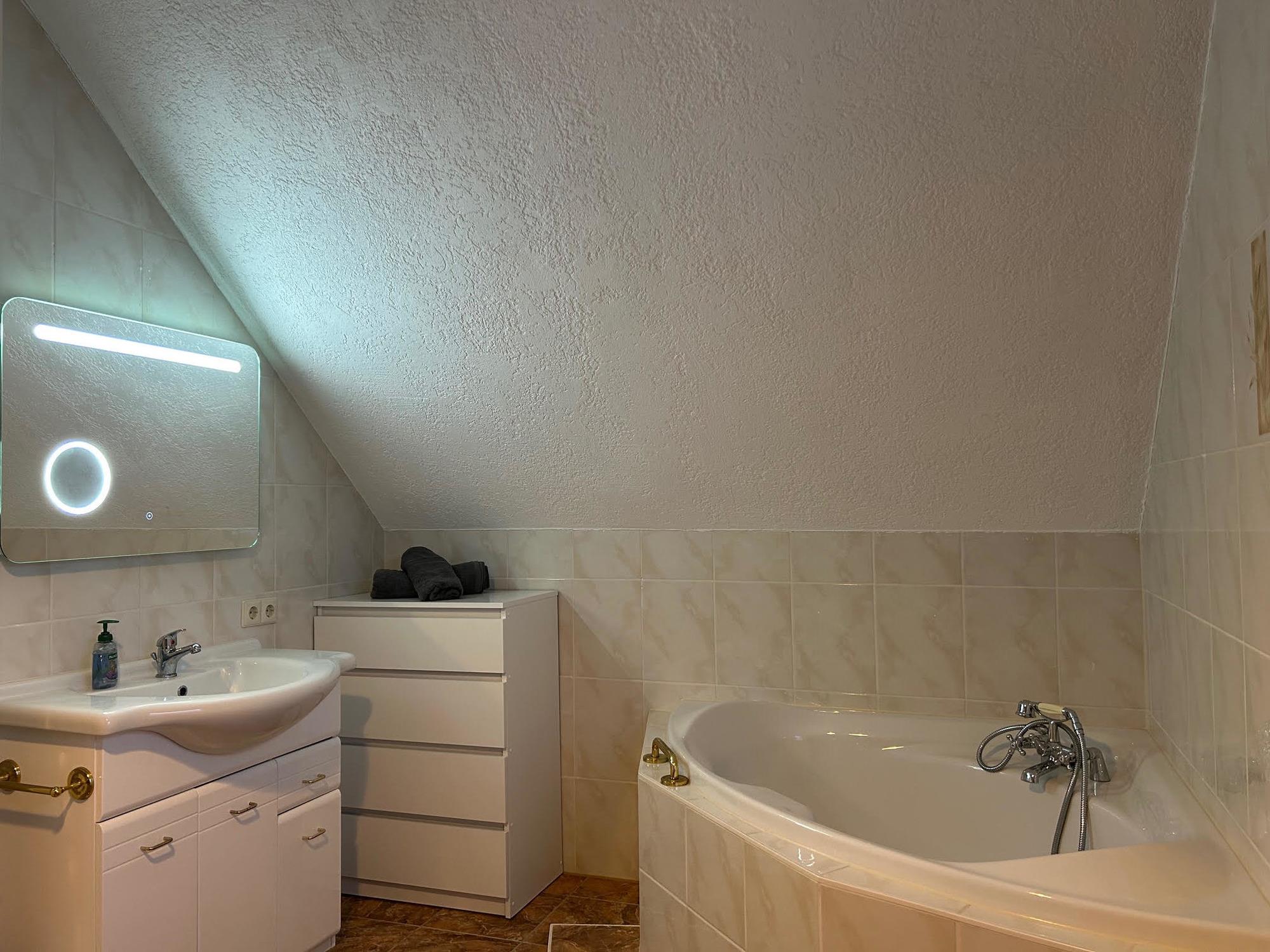Badeværelse med bruser og badekar