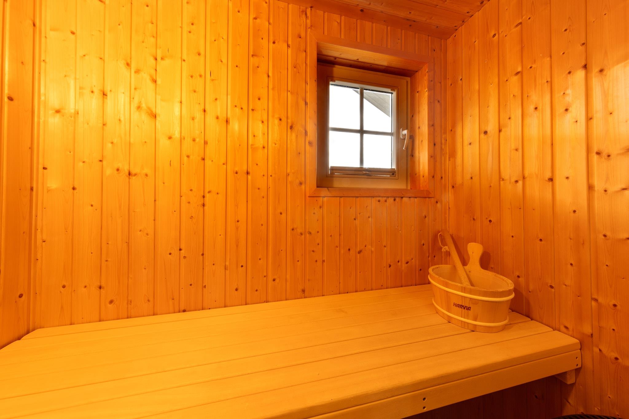 Stueetage: (entre, Stue(Fjernsyn, kakkelovn(træ)), åbent køkken(ovn, opvaskemaskine ), soveværelse(dobbeltseng), soveværelse(2x enkeltseng), badeværelse(badekar eller bruser, håndvask, toilet)) sauna, vaskemaskine