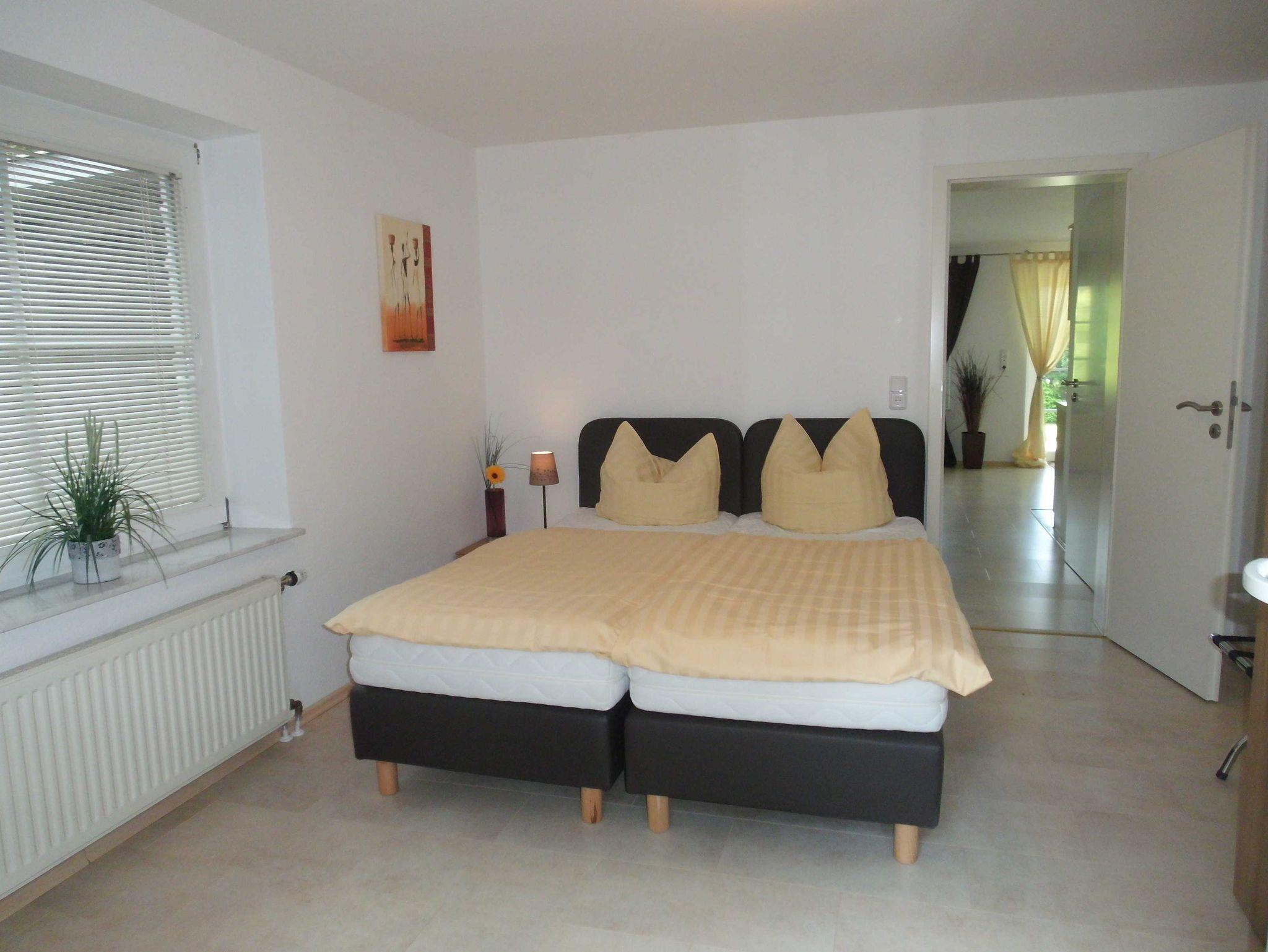 Das ca. 44 m² große 2-Raum-Appartement besteht aus einem Wohn-Schlafraum mit einer modernen Schlafcouch und einer Küchenzeile mit Backofen und Geschirrspüler, sowie einem sep. Schlafzimmer mit Doppelbett. Ihnen steht eine Terrasse und ein großer Garten zur Verfügung.