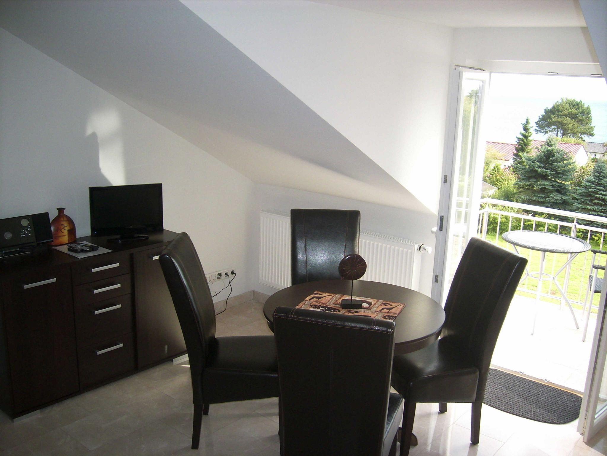 VV 32: Penthouse, ca. 38 m², 1 Wohnzimmer mit Doppelschlafcouch, 1 Schlafzimmer mit Doppelbett, Duschbad, offene Küche, Balkon; Panorama-Meerblick.