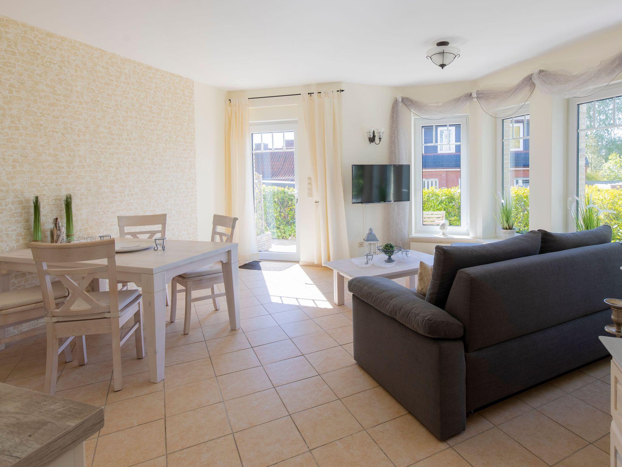 Die individuelle und komfortable 55 m² große Ferienwohnung liegt sehr ruhig in einer Parallelstraße zum nur 100 m entfernten Strand. Die eigene, möblierte Terrasse lädt am Morgen zum Sonnenfrühstück und abends zum Grillen ein.