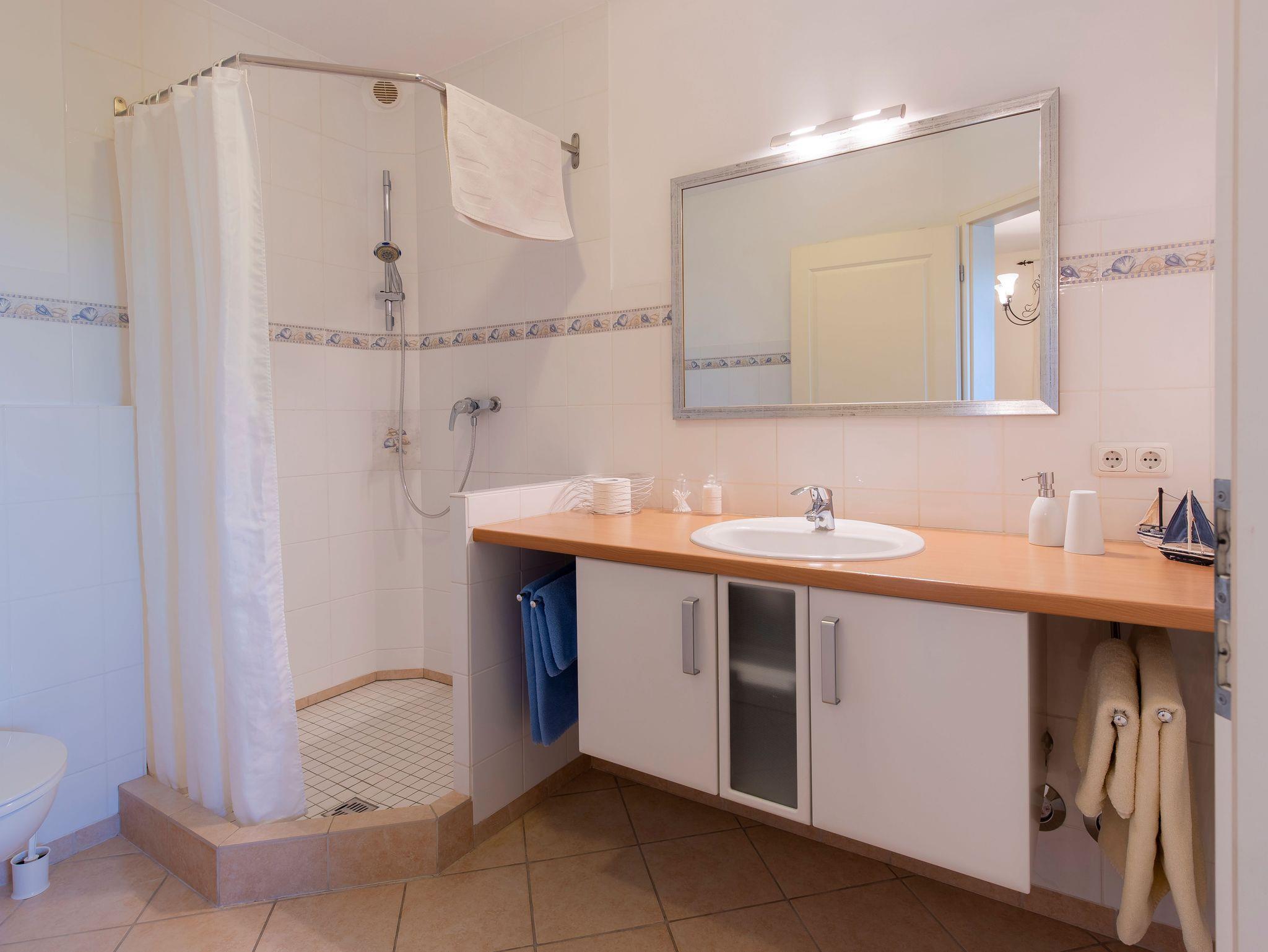 Das elegante Bad rundet die Ferienunterkunft ab.