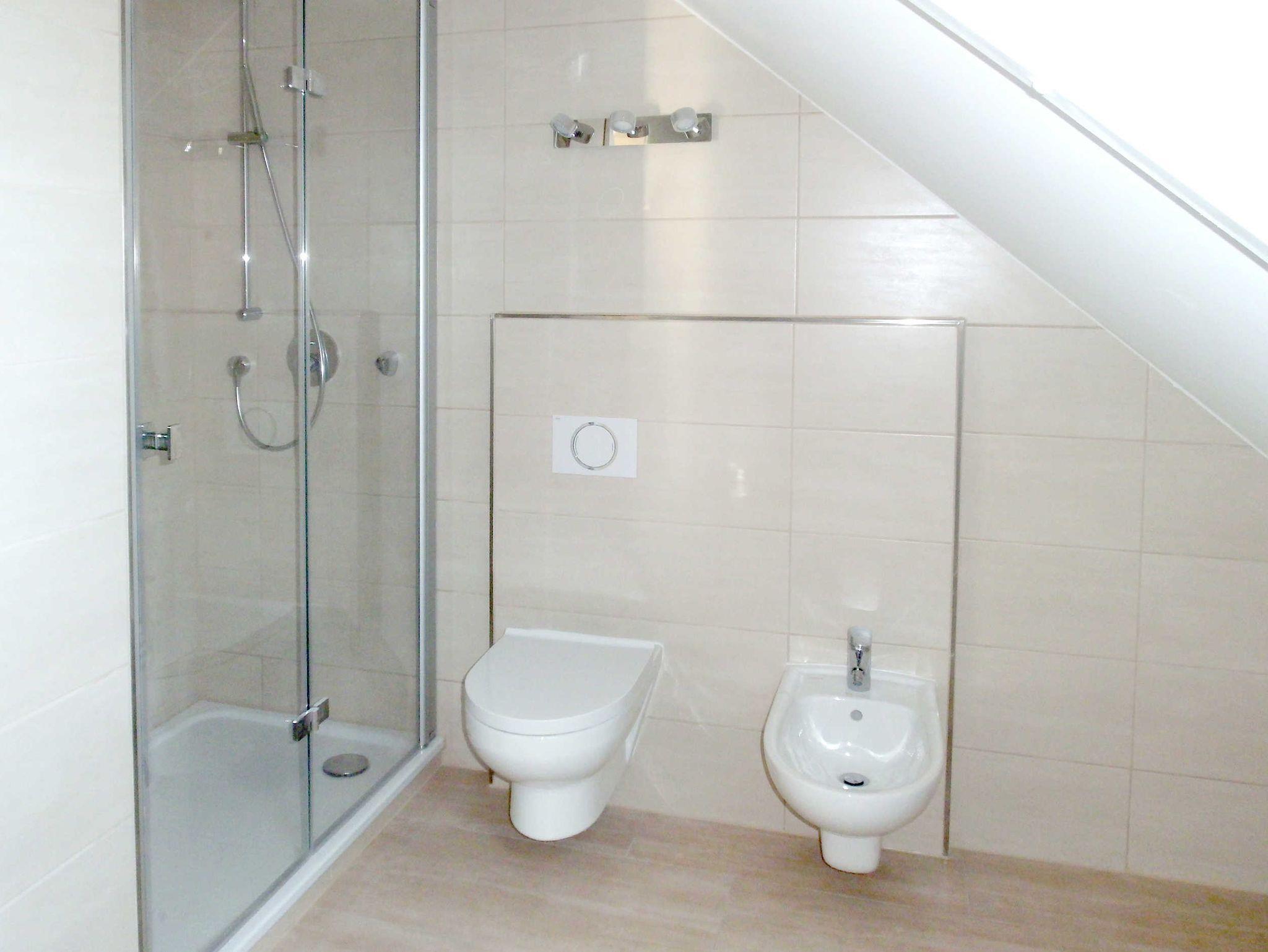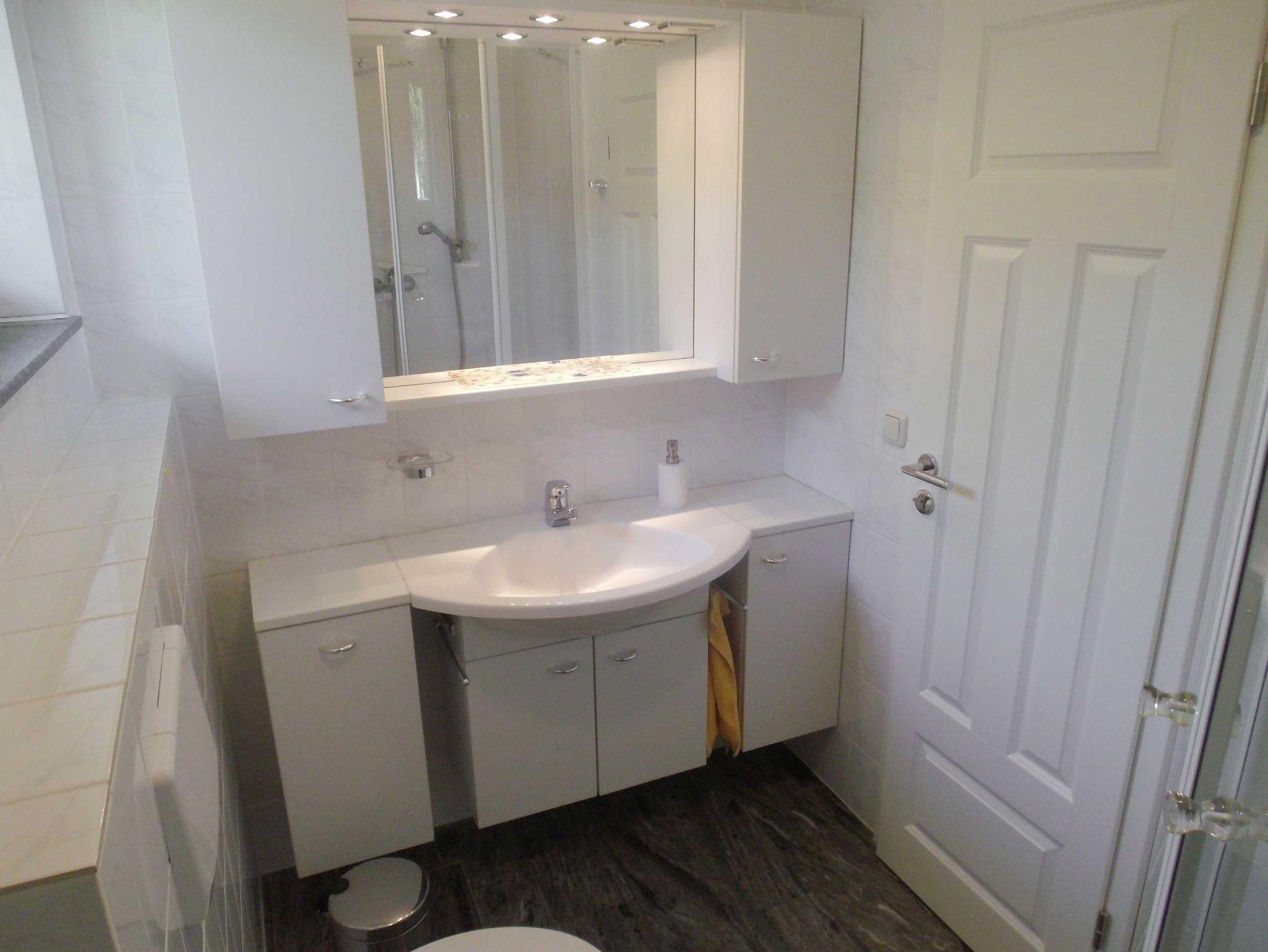 Durch einen Flur getrennt betritt man die 2. Wohneinheit. Sie ist ca. 40 m² groß und hat im EG eine Wohnküche sowie ein Duschbad und im Obergeschoss 1 geräumiges Schlafzimmer. Beide Räume sind mit TV ausgestattet. Auch hier besteht Zugang zum großen Villengrundstück und zu einer eigenen Terrasse.
