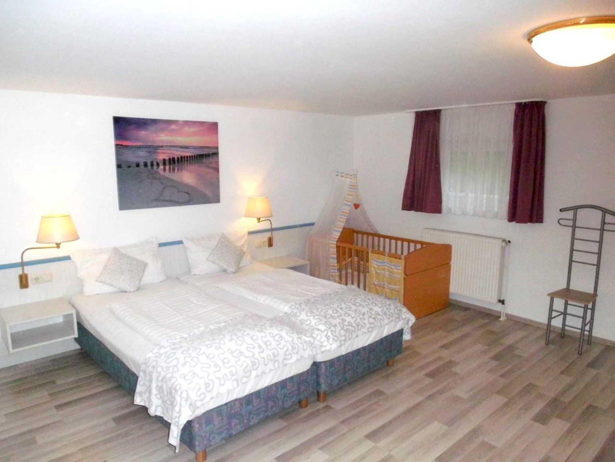 3-Raum-Appartement, EG/Maisonettenwohnung mit ca. 95 m² . Dem Gast steht eine Wohnküche mit einem Doppelschlafsofa, ein Schlafzimmer mit Doppelbett sowie ein Wohn-Schlafbereich mit Schlafcouch für 2 Personen zur Verfügung. Ein Balkon mit eingeschränktem Meerblick und eine Terrasse runden die Ferienunterkunft ab.