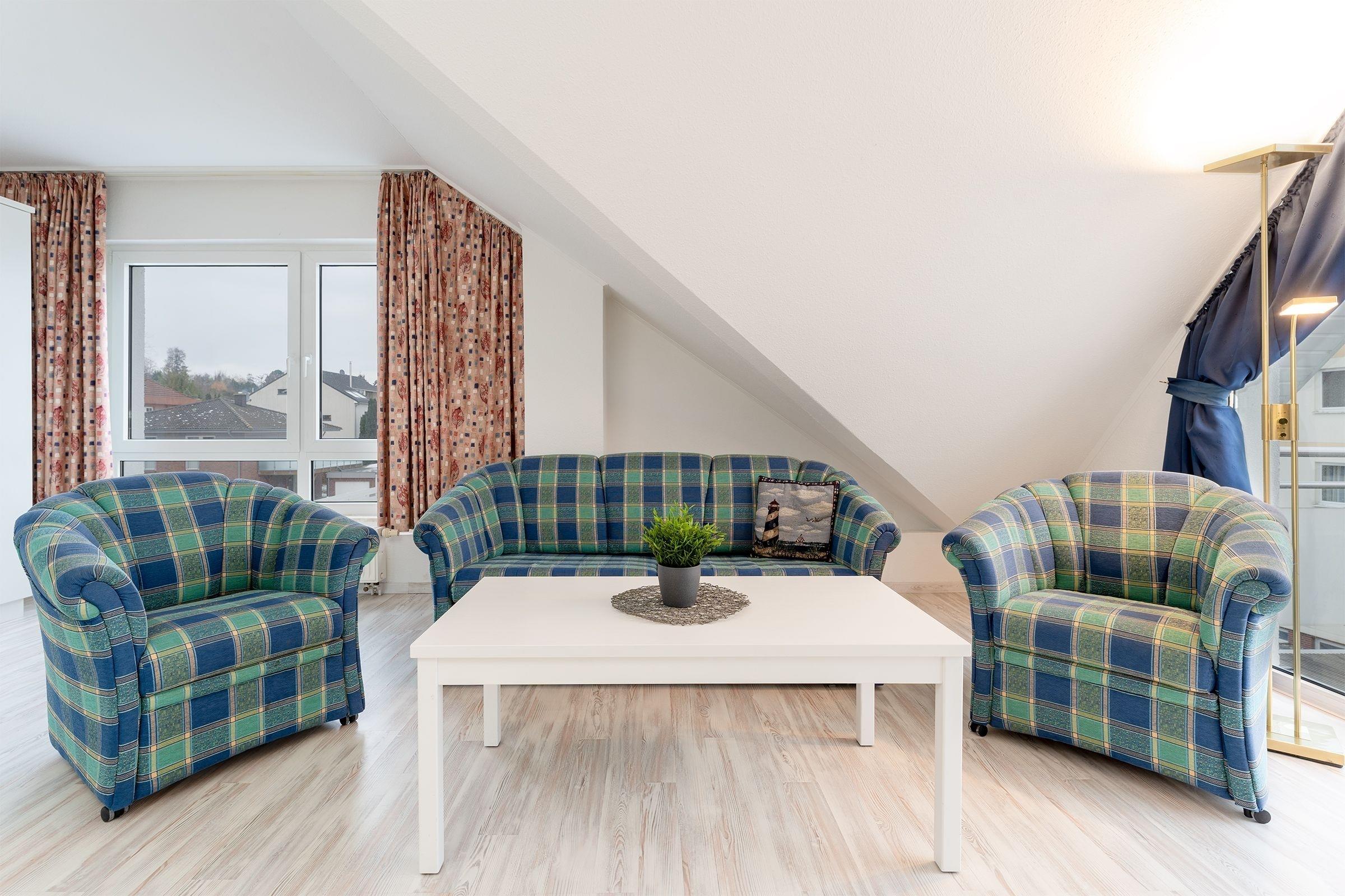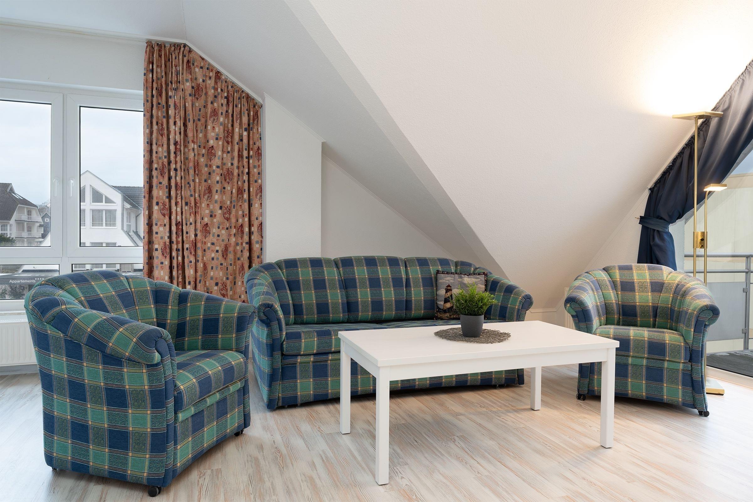 Das 2,5-Zimmer-Appartement hat ca. 54 m² und bietet Platz für bis zu 6 Personen. Es verfügt über 2 Etagen (Maisonette).