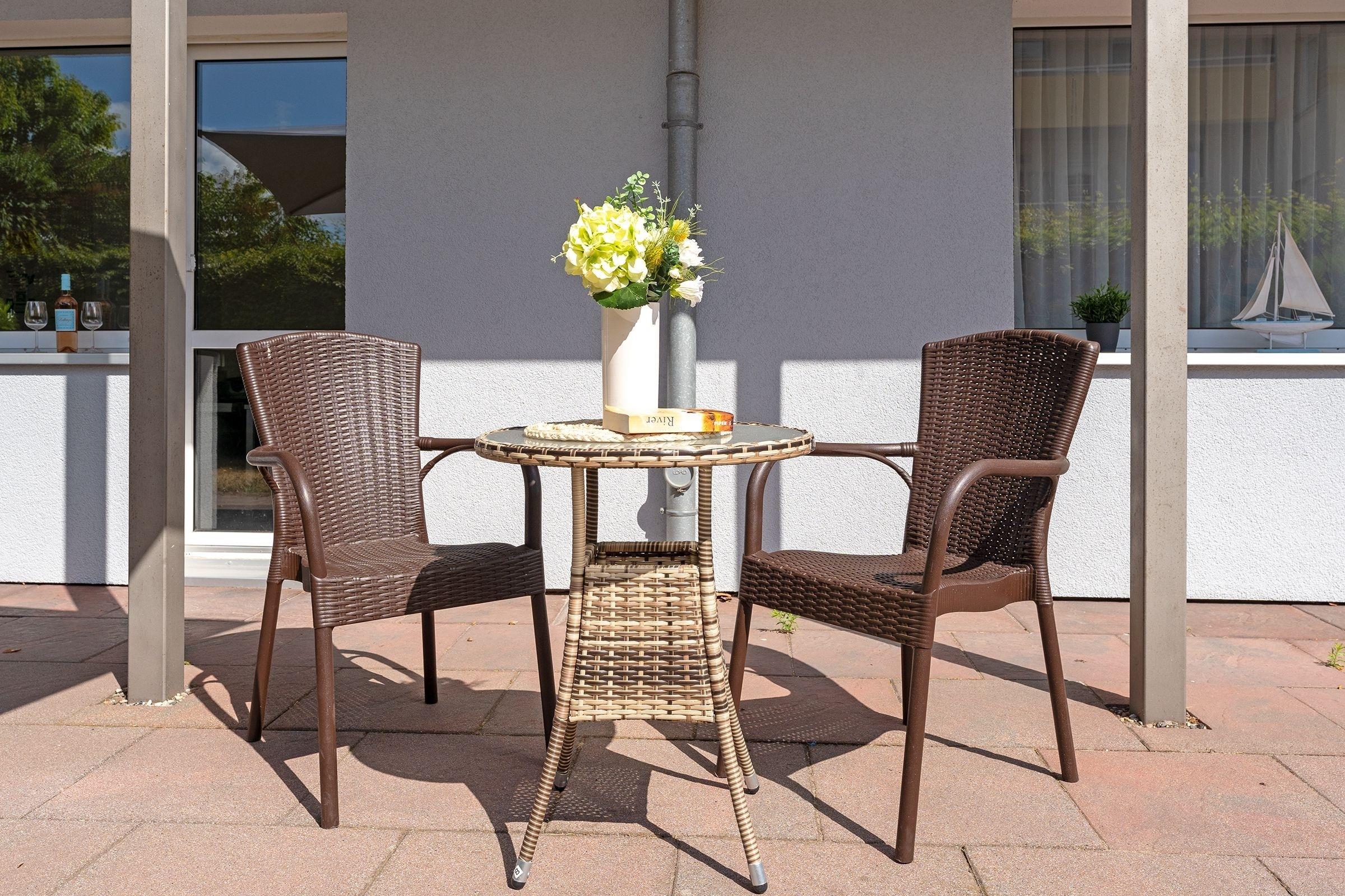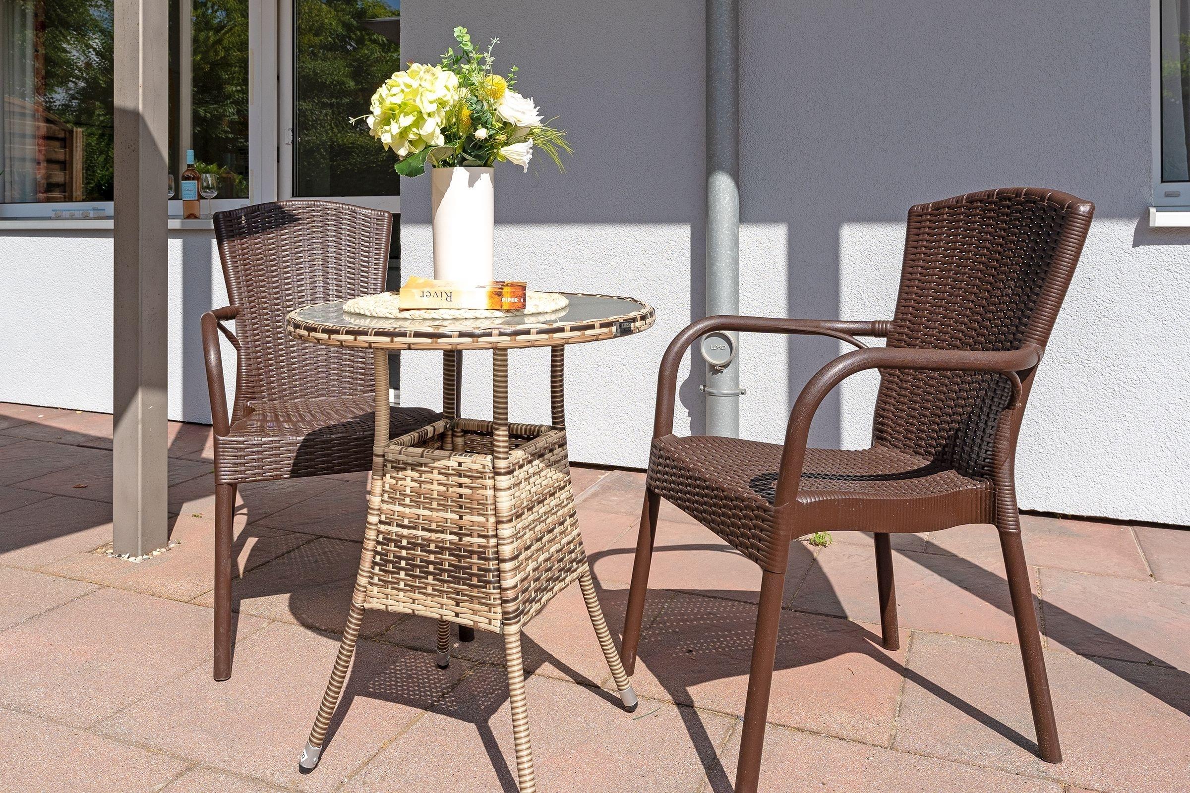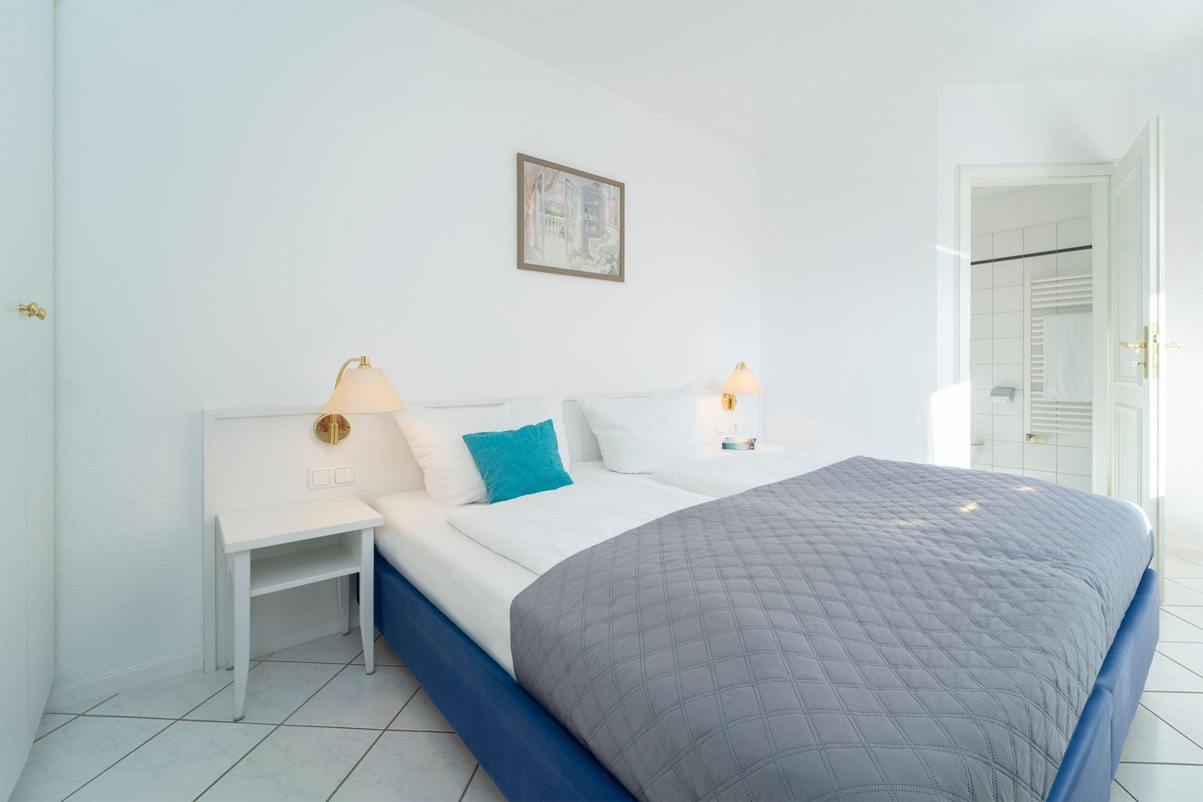 Das 2-Zimmer-Appartement hat ca. 33 m² und bietet Platz für bis zu 4 Personen. Es ist komplett gefliest und verfügt über einen Wohnraum mit: Schlafcouch für 2 Personen, TV-Gerät, Radio/CD-Player, Essplatz, integrierter Küchenzeile sowie einem Zugang zur großzügigen Terrasse mit Gartenmöbeln. Die moderne Küchenzeile ist ausgestattet mit: Induktionsherd (4 Kochplatten), Kühlschrank mit Gefrierfach, Mikrowelle, Geschirrspülmaschine, Wasserkocher, Kaffeemaschine und Toaster. Im Schlafzimmer befinden sich ein Doppelbett (2x 90x200 cm) und ein 2. Zugang zur Terrasse. Duschbad mit Fön.