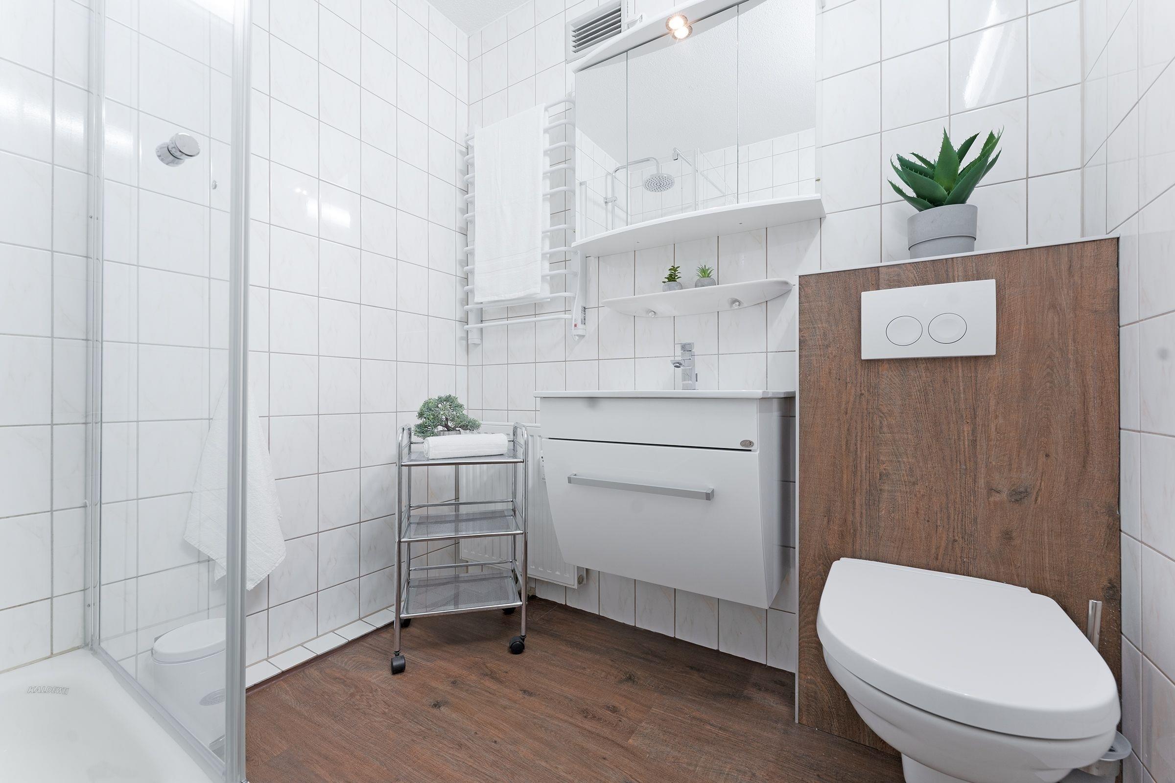 Sie möchten von Ihrer Wohnung aus den freien Blick auf die Ostsee genießen? Dann sind Sie hier genau richtig. Das Herzstück dieser Wohnung bildet das Wohnzimmer mit offener Küche und Zugang zum Balkon. Von hier aus können Sie mit einem frischen Kaffee - es ist eine Filter- sowie eine Kaffeepadmaschine vorhanden - in Richtung Osten auf die Ostsee und den Hansapark blicken. Neben einem Smart TV mit kostenlos nutzbarem Disney+-Streaming-Zugang und einen Radio mit Bluetooth-Eingang umfasst das Wohnzimmer außerdem eine Schlafcouch (140x200 cm). Die weiteren Gäste schlafen nebenan (auch hier gibt es Meerblick) im Boxspring-Doppelbett (180x200 cm). Das Schlafzimmer ist durch einen offenen Kleiderschrank mit dem dritten Schlafplatz, einem Schlafsofa (140x200 cm) verbunden und verspricht Nachtruhe. Das nebenan liegende Badezimmer lässt mit Dusche, beheizbarem Handtuchhalter und Föhn keine Wünsche offen.