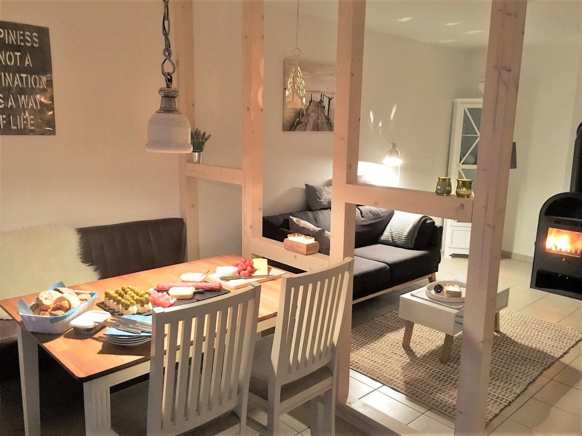 'Haus in Haus' in Strandlage mit 2 Schlafzimmern, Sauna, Kaminofen, offene Küche am großen Wohnbereich, Wanne, 2 Terrassen, Stellplatz direkt an der Terrasse. Wäschepakete auf Anfrage möglich.
