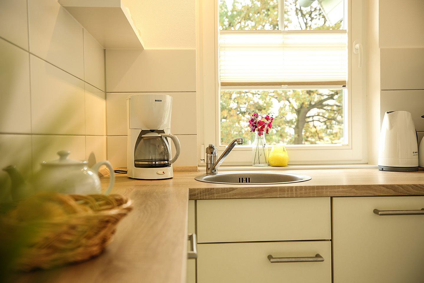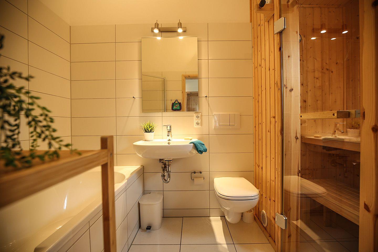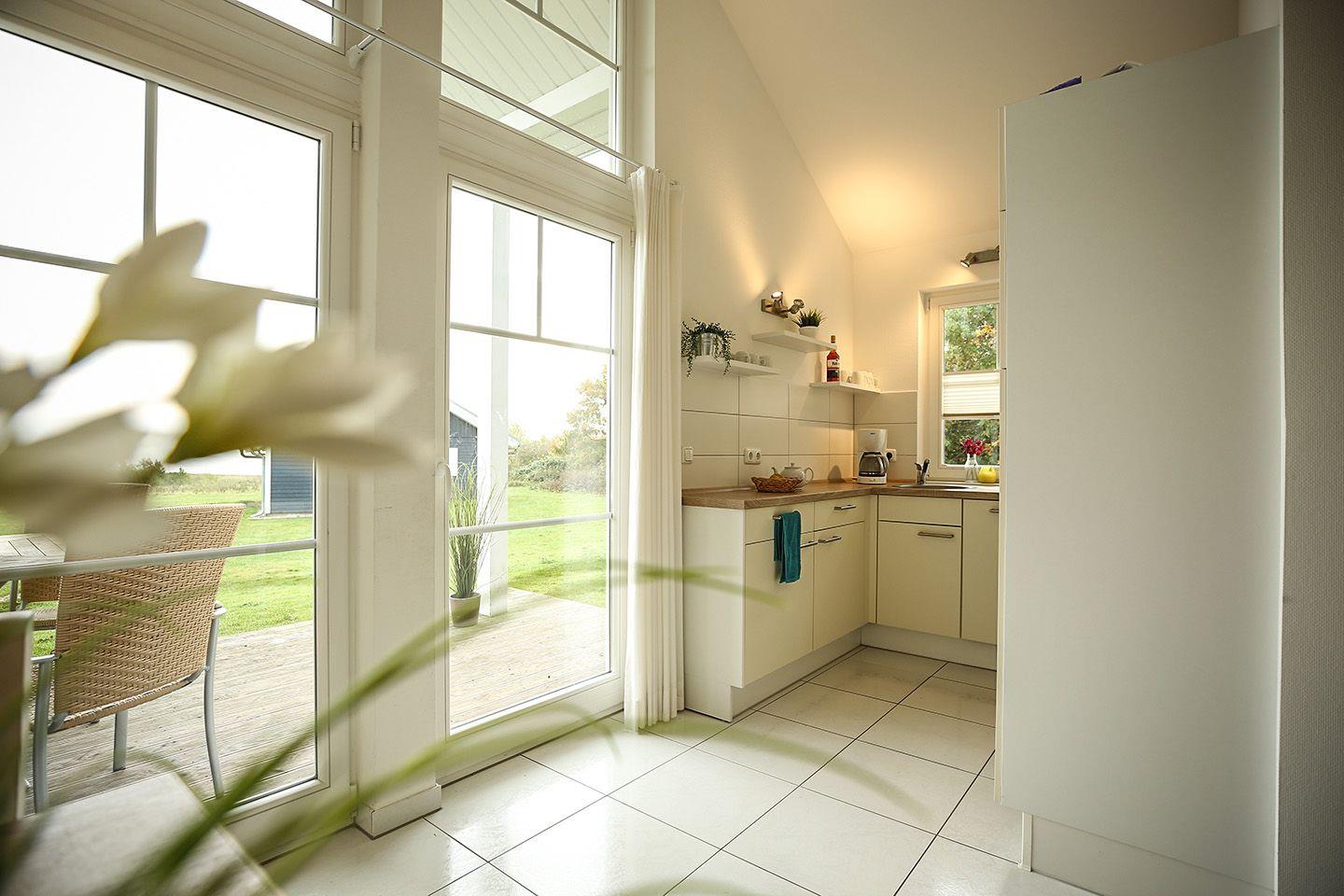 Auf 70 qm stehen Ihnen auf einer Ebene zwei Schlafräume und ein heller, geräumiger Wohnraum mit offener Küche und Pelletofen zur Verfügung. Der Ofen sorgt für gemütliche Stunden mit Freunden und Familie. Von der Terrasse haben Sie Blick auf die Ostsee. Die moderne Küche ist mit Geschirrspülmaschine, Herd und Mikrowelle voll ausgestattet. Der erste Schlafraum hat ein Doppelbett (2x 90 x 200 cm), im zweiten stehen eine Etagenbett und ein Einzelbett (jeweils 90 x 200 cm). Das Sofa im Wohnraum hat zudem eine Schlaffunktion (140 x 200 cm). Das Bad ist mit Badewanne und Sauna ausgestattet. Der Komfort einer eigenen Sauna wird sehr von unseren Wintergästen geschätzt. Eine eigene Waschmaschine gehört ebenfalls zur Ausstattung. Die Beheizung erfolgt über Elektroheizungen und den Pelletofen.