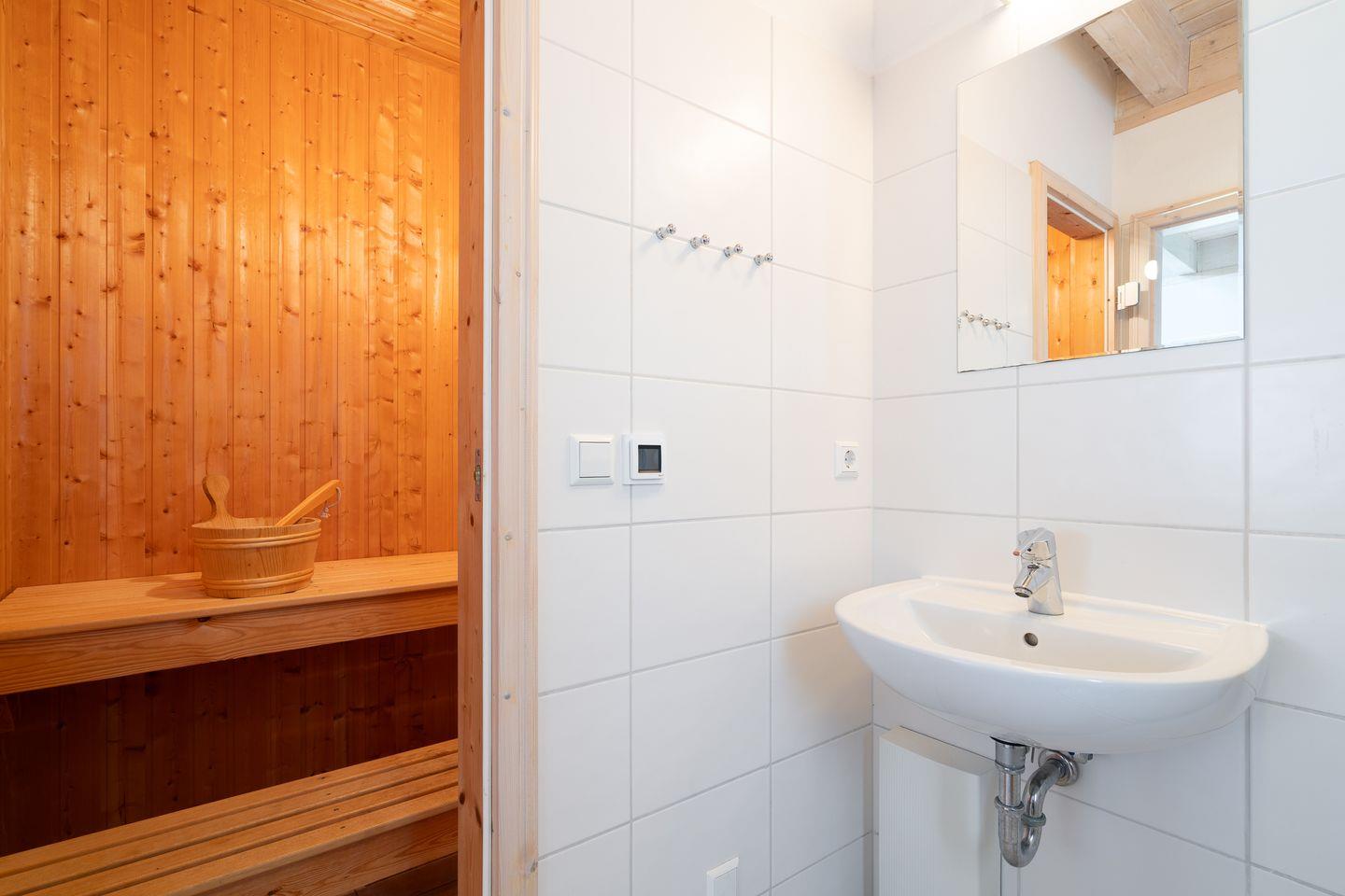 Der Wohn- und Essbereich mit offener Küche und Kamin liegen im Erdgeschoss. Die moderne Küche ist mit Spülmaschine, Backofen, Herd und Waschmaschine ausgestattet. Die Sauna mit Dusche und WC finden Sie ebenfalls im Erdgeschoss. Der Komfort einer eigenen Sauna wird sehr von unseren Wintergästen geschätzt. Vom Wohn- und Essbereich haben Sie Zugang zur Terrasse, von der Sie Blick auf die Ostsee haben. In der ersten Etage sind zwei Schlafräume mit Doppelbetten, sowie das Bad mit Whirlwanne. Einen dritten Schlafbereich mit zwei getrennten Einzelbetten finden Sie in der 2. Etage in einer offenen Schlafgalerie unterm Dach. Die Beheizung erfolgt über Elektroheizungen und den Kamin.