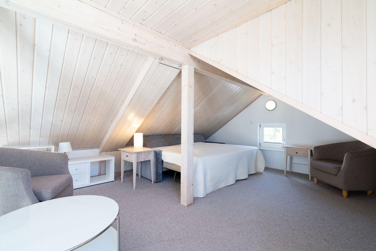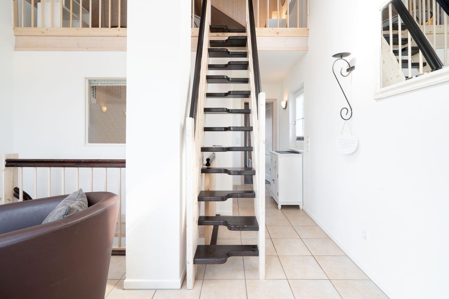 Die große Doppelhaushälfte "Krabbe" Nr. 94 bietet viel Platz und Wohlfühl-Komfort über 3 Etagen und Blick auf die Ostsee. Offene Küche mit Spülmaschine und Essbereich mit Kamin sind im Erdgeschoss, sowie Sauna mit Dusche und WC und ein Schlafraum mit Doppelbett. In der 1. Etage befinden sich ein zweiter Schlafraum mit Doppelbett, der Wohnbereich und das Bad mit Whirlwanne und Waschmaschine. Zur offenen Galerie mit Schlafsofa führt von der 1. Etage aus eine steile Raumspartreppe. WLAN inklusive.