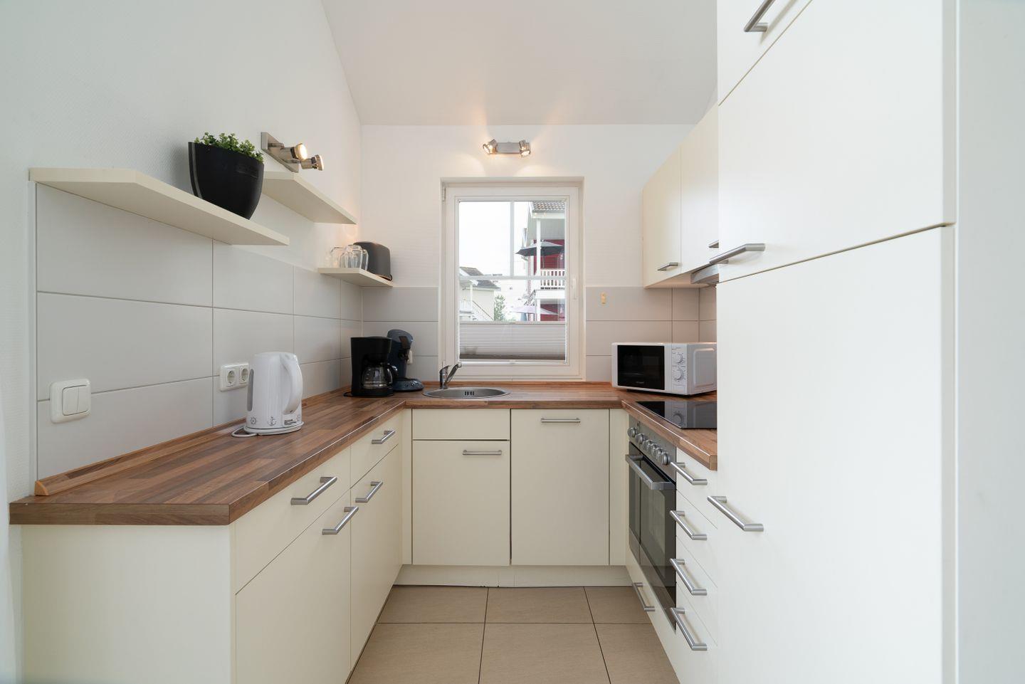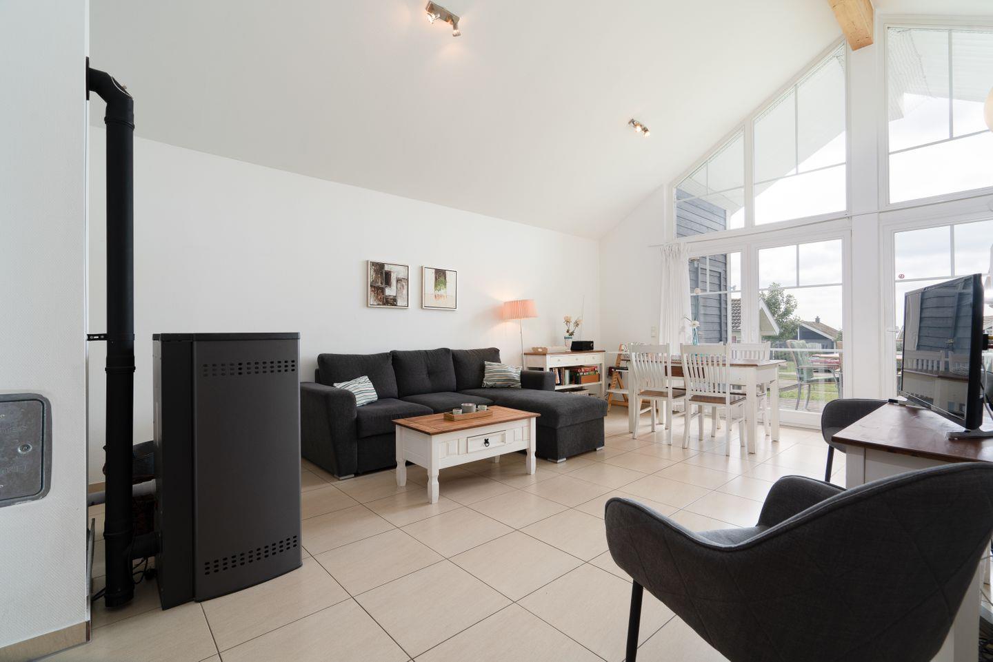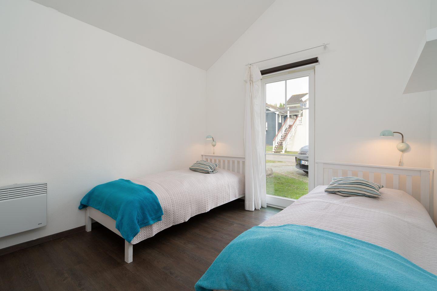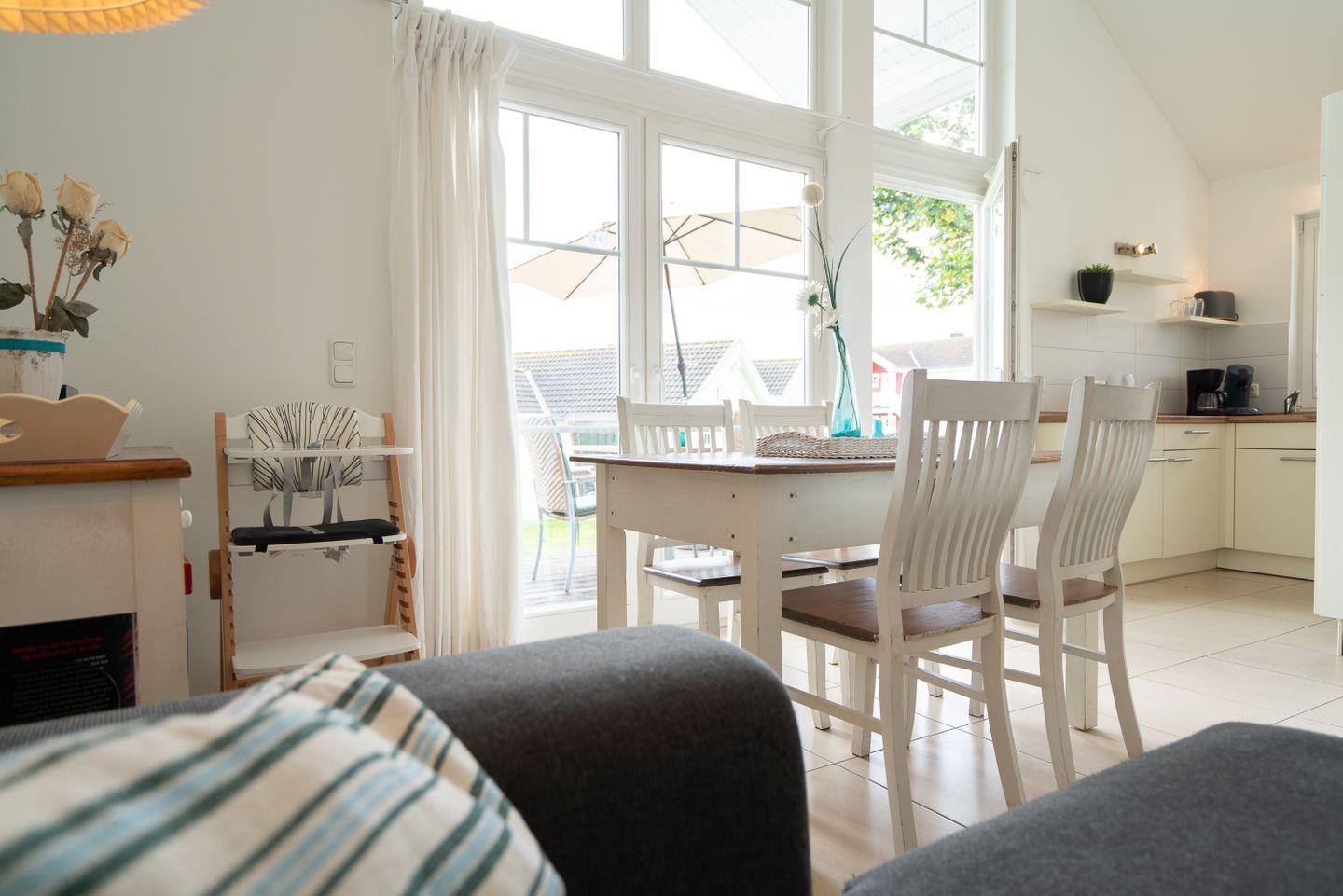 Die gemütliche Bungalowhälfte "Heimathafen" Nr. 51 liegt in der Strandpark-Anlage und ist für 4 Personen geeignet. Vom geräumigen Wohnraum mit Pelletofen und offener Küche haben Sie Zugang zur Terrasse. Die Küche ist mit Spülmaschine, Backofen und Herd ausgestattet. Im ersten Schlafraum steht ein Doppelbett, im zweiten Schlafraum stehen zwei Einzelbetten. Das Bad verfügt über Dusche, Sauna und Waschmaschine. WLAN ist inklusive.