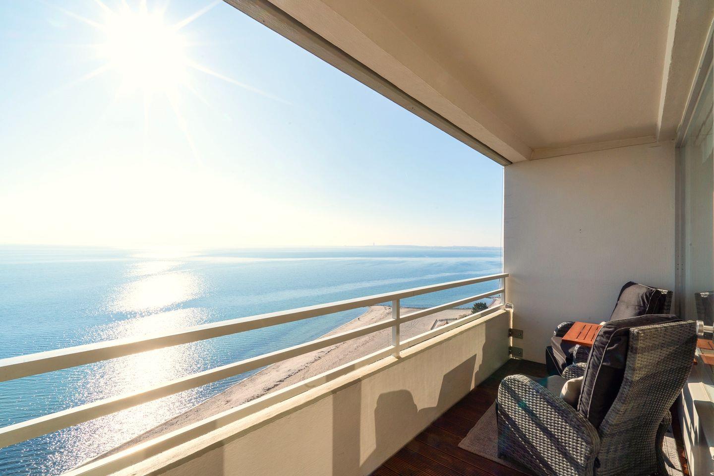 die komfortable und geschmackvoll eingerichtete Wohnung befindet sich in der 9. Etage mit Balkon in Süd-Ost-Lage und traumhaftem Ostseeblick über die Lübecker Bucht. Die moderne und mit Spülmaschine, Backofen und kleinem Kochfeld ausgestattete Küche ist mit einer Kücheninsel zum gemütlichen Wohn- und Essbereich offen. Im Schlafraum steht ein Doppelbett (180 cm x 200 cm). Im Wohnbereich steht zudem eine Schlafcouch (140 cm x 190 cm). Es gibt ein innenliegendes, modernisiertes Duschbad. Zum Strand sind es nur wenige Gehminuten. PKW-Stellplatz im Parkdeck, es führen Treppen von dort aus zur Wohnung. Über einen Seiteneingang gelangt man zum Fahrstuhl für ebenerdiges Be-und Entladen.
