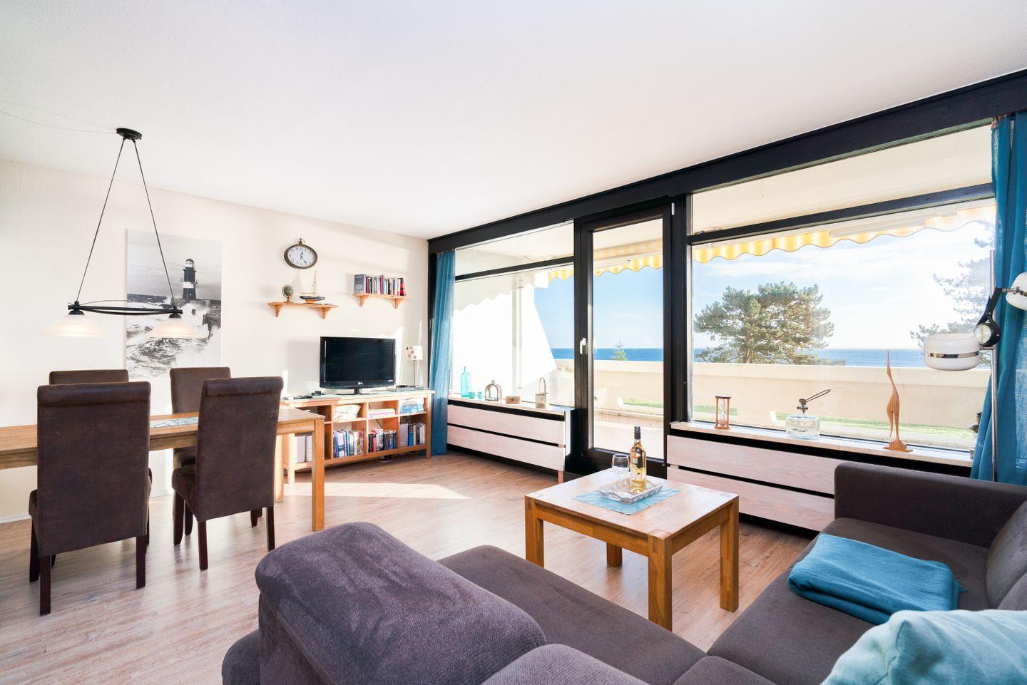 Herzlich willkommen in der 3-Raum-Ferienwohnung Nr. 061 mit wunderschönem Blick über die Lübecker Bucht. Ein schönes Urlaubsdomizil für die ganze Familie in ruhiger Lage. Kombinierter Wohn-Essbereich mit Balkon in Süd-Ost-Lage, Küche mit Durchreiche zum Wohn-Essbereich. Im ersten Schlafraum befinden sich zwei getrennte Betten, die man nicht zusammenstellen kann, im zweiten steht ein Etagenbett. Es gibt ein innenliegendes Duschbad. WLAN ist inklusive.