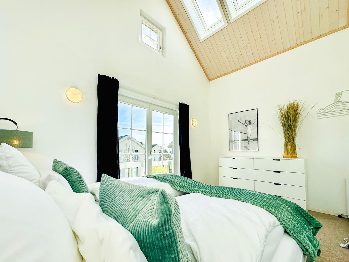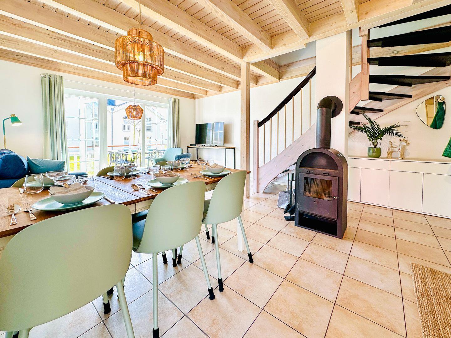 Das komfortable Reihenhaus "Barkentine" Nr. 9 in der Strandpark-Anlage hat einen kombinierten Wohn- und Essbereich mit Kamin und offener Küche. Die Küche ist mit Backofen, Geschirrspüler und Waschmaschine voll ausgestattet. Im Erdgeschoß ist auch die Sauna mit Dusche. In der 1. Etage sind 2 Schlafräume mit Doppelbetten, sowie das Bad mit Whirlwanne untergebracht. In der offenen Galerie unterm Dach stehen zwei getrennte Einzelbetten. WLAN ist inklusive.