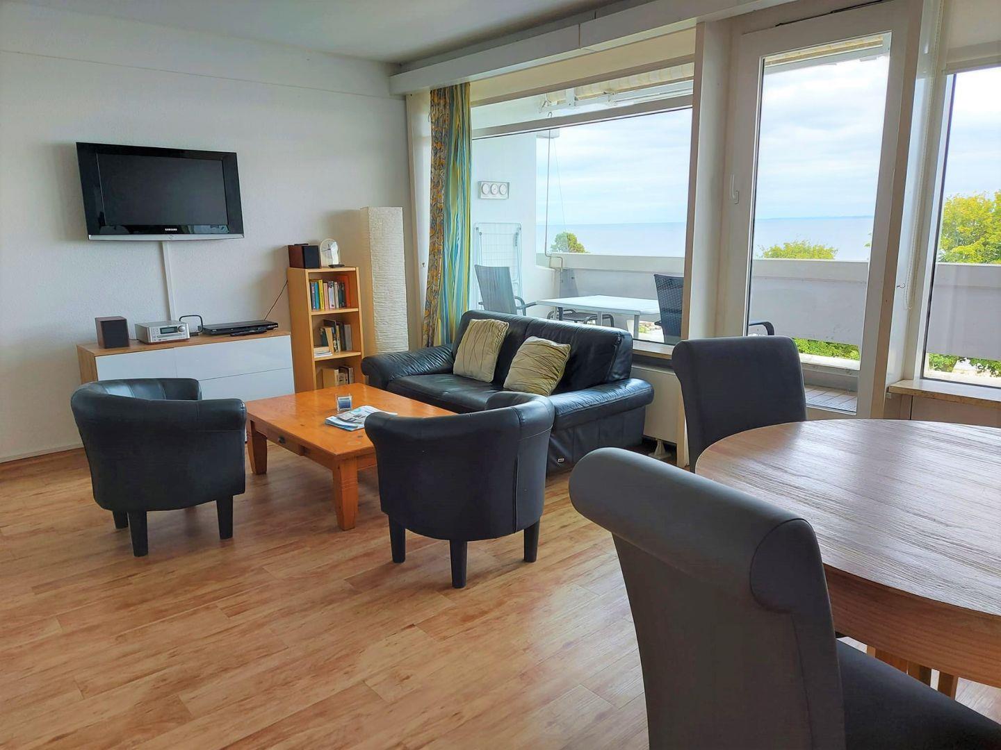 Willkommen in der Ferienwohnung Nr. 116. Ein Urlaubsdomizil für 2-4 Personen direkt am Meer, der Blick vom Balkon bietet einen wunderbaren Blick auf die Ostsee. In den hellen kombinierten Wohn- und Essbereich ist ein franz. Doppelbett integriert. Im separaten Schlafraum steht ein weiteres franz. Doppelbett. Die kleine separate Küche ist mit Spülmaschine, Backofen und Herd ausgestattet. Das moderne Duschbad ist innenliegend. Zum Strand sind es nur wenige Fußschritte. PKW-Stellplatz inklusive.