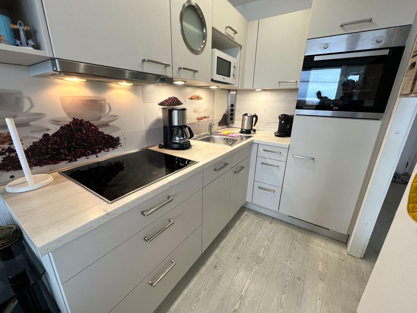 Die Ferienwohnung Nr. 453 ist eine 2-Raum-Wohnung in der 10. Etage mit Balkon und seitlichem Ostseeblick. Vom kombinierten Wohn- und Essbereich mit offener Küche und Schlafcouch haben Sie Zugang zum Balkon. Die moderne Küche ist mit Geschirrspüler, Backofen und Herd ausgestattet. Im Schlafraum befinden sich 2 Einzelbetten, die man nicht zusammenstellen kann. Duschbad mit Fenster. Zum Strand sind es max. 5 Gehminuten. WLAN ist inklusive.