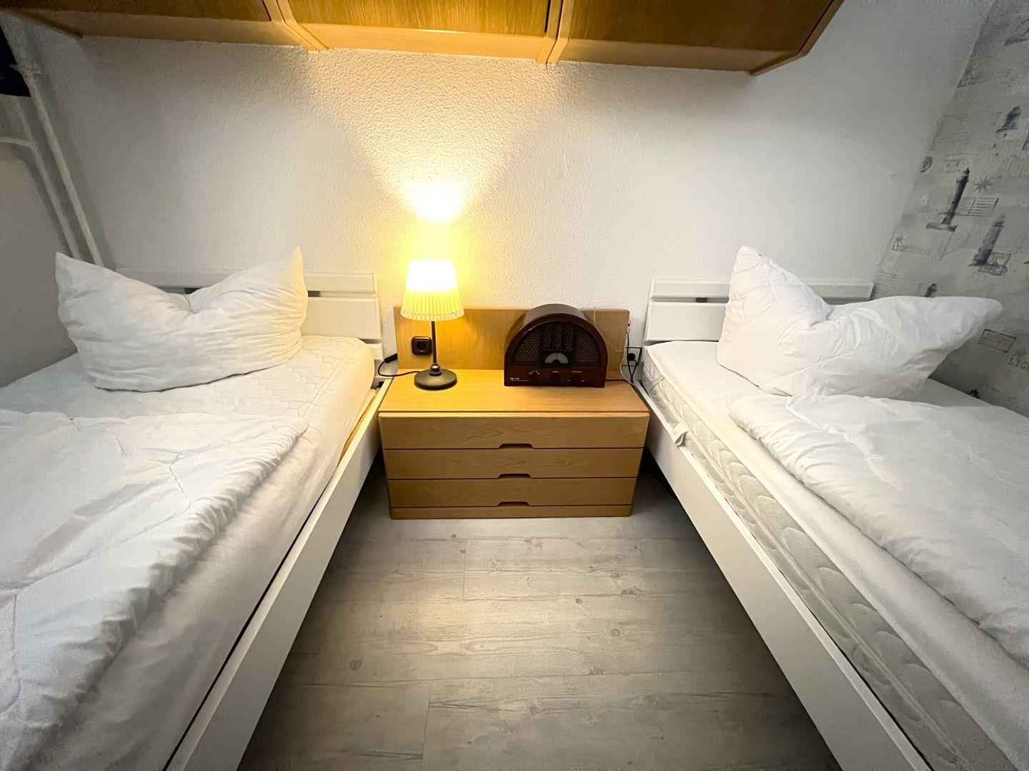 diese Ferienwohnung befindet sich in der 10. Etage mit Balkon in Süd-Westlage und seitlichem Ostseeblick in die Lübecker Bucht. Vom kombinierten Wohn- und Essbereich mit offener Küche haben Sie Zugang zum Balkon. Die moderne Küche ist mit Geschirrspüler, Backofen und Herd ausgestattet. Im Schlafraum, mit Oberlicht zum Lüften, befinden sich 2 Einzelbetten (jeweils 90 cm x 190 cm), die man nicht zusammenstellen kann. Im Schlafraum ist kein Platz, um ein Kinderreisebettchen aufzustellen. Im Wohnraum befindet sich eine Schlafcouch (140 cm x 200 cm). Es gibt ein Duschbad mit Fenster. Zum Strand sind es nur wenige Fußschritte. PKW-Stellplatz inklusive.