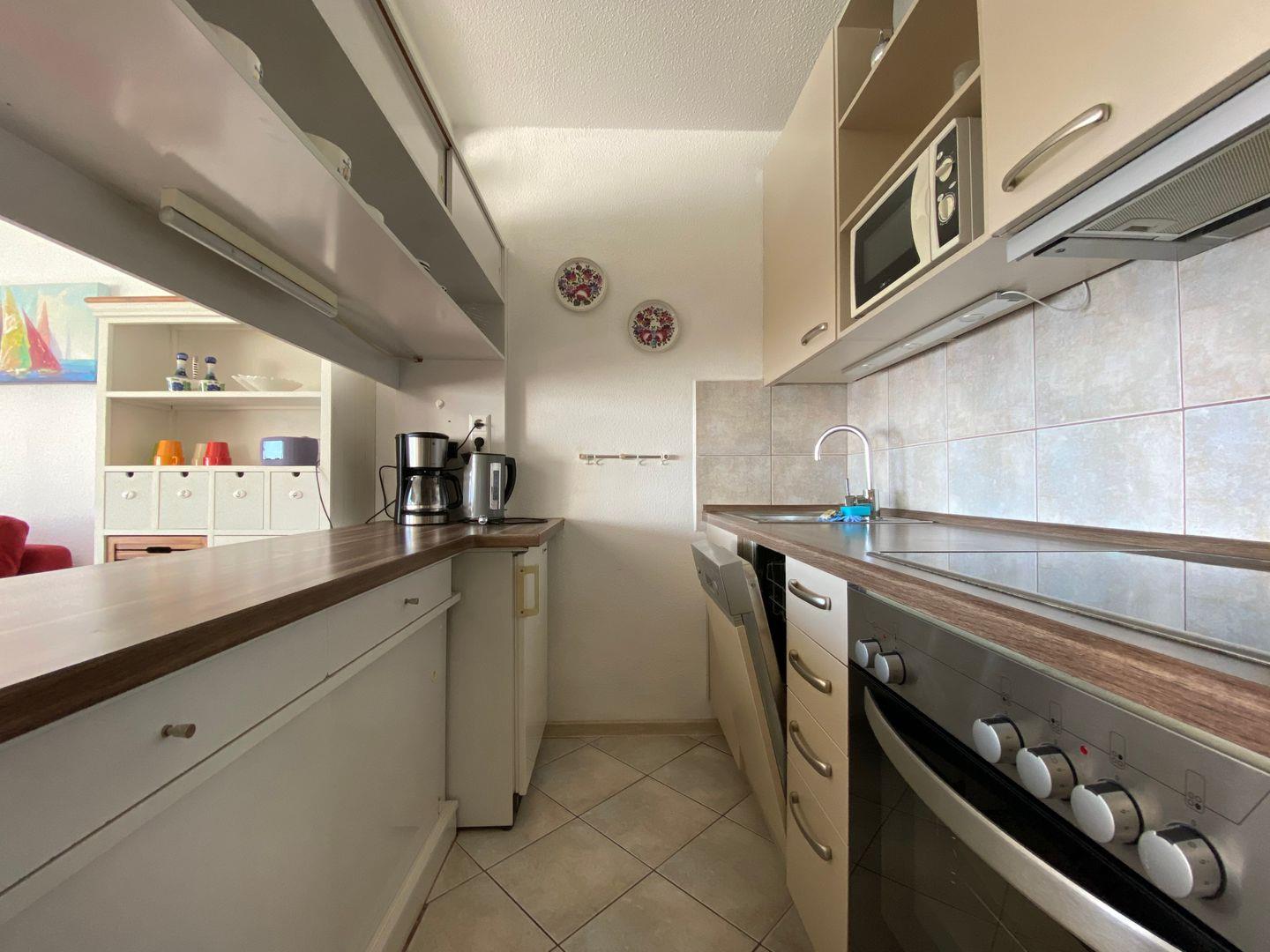 hier erwartet Sie eine liebevoll eingerichtete 2-Raum-Nichtraucher-Ferienwohnung, die für 2-4 Personen geeignet ist. Der Balkon liegt in Süd-Ost-Lage und bietet einen wunderbaren Blick auf die Ostsee. Vom kombinierten Wohn- und Essbereich haben Sie Zugang zum Balkon. Die Küche ist mit Geschirrspüler, Backofen und Herd gut ausgestattet und mit einer Durchreiche zum Wohnbereich offen. Im Schlafraum steht ein Doppelbett (2x 90 cm x 200 cm). Im Wohnraum befindet sich zudem eine Schlafcouch (140 cm x 200 cm). Das Wannenbad ist innenliegend. Ohne eine Straße überqueren zu müssen, sind es zum flachabfallenden Sandstrand nur wenige Fußschritte. PKW-Stellplatz inklusive.