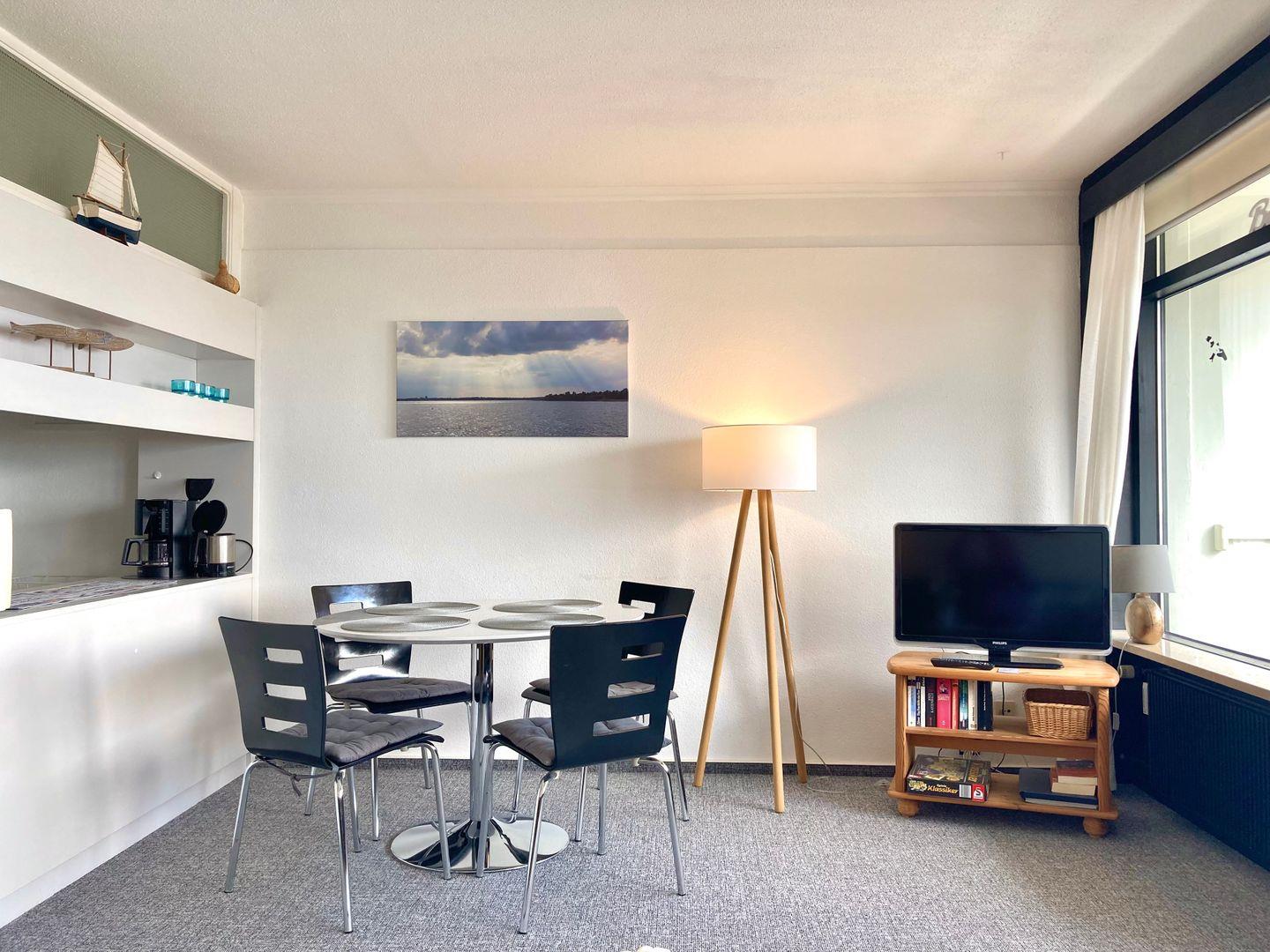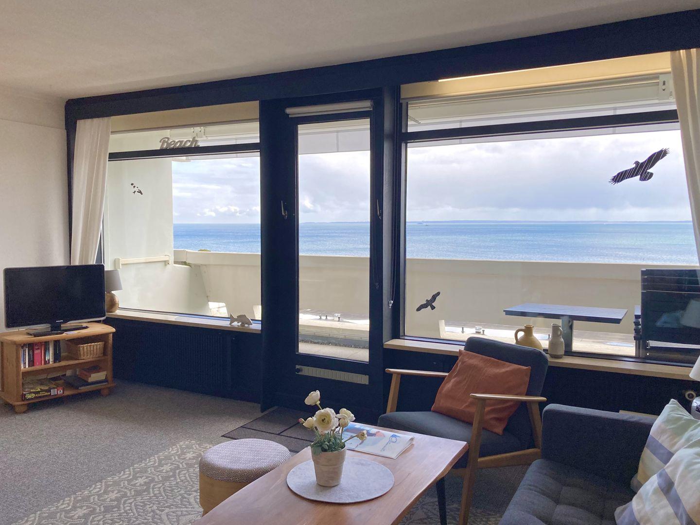 Die Wohnung befindet sich in der 2. Reihe der Terrassenhäuser in unmittelbarer Strandnähe. Über die 1. Reihe hinweg genießen Sie von der 3. Etage aus einen tollen Blick die Küste entlang über die Lübecker Bucht. Vom gemütlichen kombinierten Wohn- und Essbereich haben Sie Zugang zum Balkon in Süd-Ost-Lage. Die moderne Küche mit Backofen und Herd ist mit einer Durchreiche zum Essbereich hin offen. Im ersten Schlafraum stehen zwei Einzelbetten (90 cm x 180 cm), im zweiten Schlafraum ein Etagenbett (80 cm x 180 cm). Beide Schlafräume haben ein Fenster, das Duschbad ist hingegen innenliegend. Ohne eine Straße überqueren zu müssen, sind es nur wenige Gehminuten zum schönen Sandstrand. Der PKW Stellplatz befindet sich vor dem Haus.