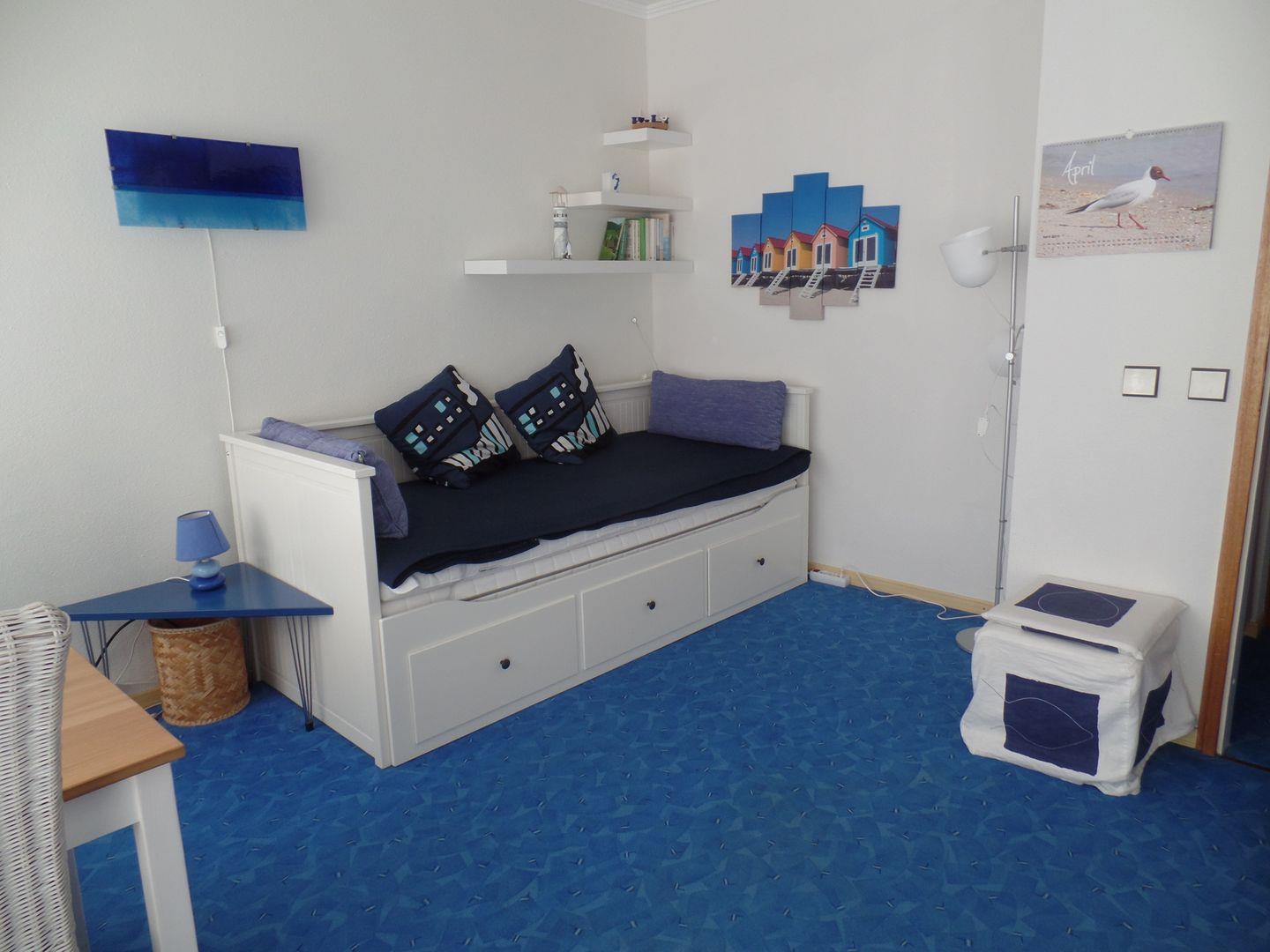 diese 1-Raum-Nichtraucher-Ferienwohnung liegt in der Apartmentanlage Ferienpark in der 7. Etage mit einem möblierten Süd-West-Balkon und seitlichem Ostseeblick. Die Wohnung ist ca. 33 qm groß und für 2 Personen geeignet. Im kombinierten Wohn- und Schlafraum steht ein Tandembett (2x 80 cm x 200 cm) zum Ausziehen. Die kleine Küche ist mit Backofen und Herd ausgestattet und mit einer Durchreiche zum Wohn-/Schlafbereich hin offen. Das modernisierte Duschbad ist innenliegend. Zum Strand sind es nur wenige Gehminuten. PKW-Stellplatz inklusive.