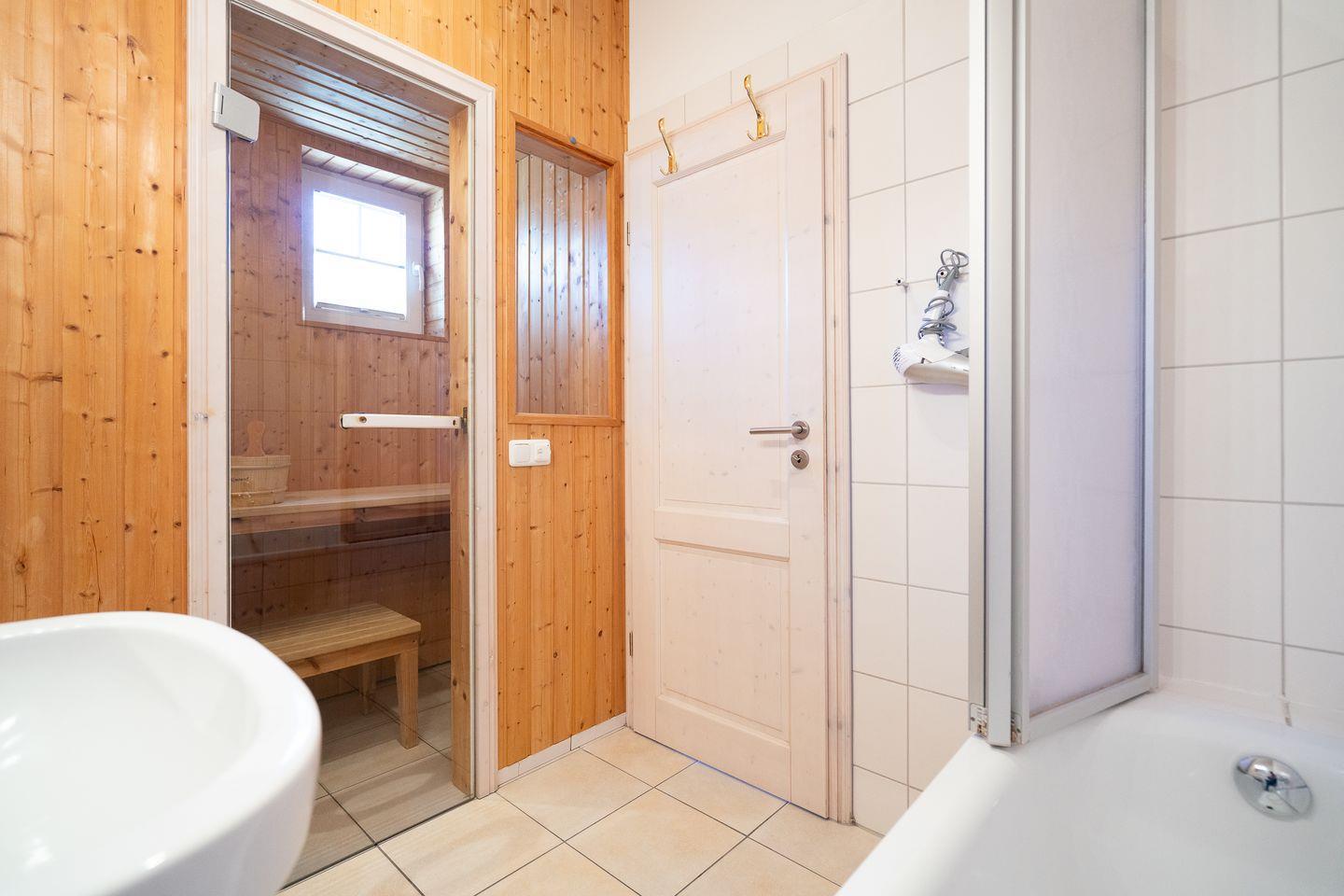 Die schöne Ferienwohnung Typ "Brigantine" liegt in der 1. Etage mit Balkon. Auf 70 qm stehen Ihnen zwei Schlafräume einmal mit Doppelbett (2x 80 x 200 cm) und einmal mit zwei getrennten Betten (jeweils 90 x 200 cm), ein geräumiger Wohn- und Essraum mit Kamin und Zugang zum Balkon zur Verfügung. Der Holzkamin sorgt für gemütliche Stunden mit Freunden und Familie. Vom Balkon haben Sie auch Meerblick über die anderen Häuser hinweg. Das Bad ist mit Wanne und Sauna ausgestattet. Der Komfort einer eigenen Sauna wird sehr von unseren Wintergästen geschätzt. Die zum Wohn- und Essbereich offene Küche ist mit Geschirrspülmaschine, Herd und Backofen gut ausgestattet. Eine eigene Waschmaschine gehört ebenfalls zur Ausstattung. Die Beheizung erfolgt über Elektroheizungen und den Kamin.