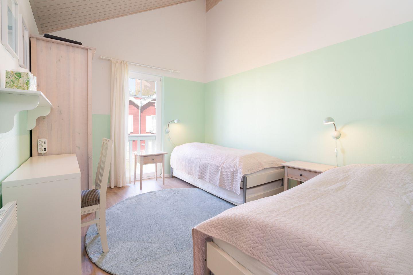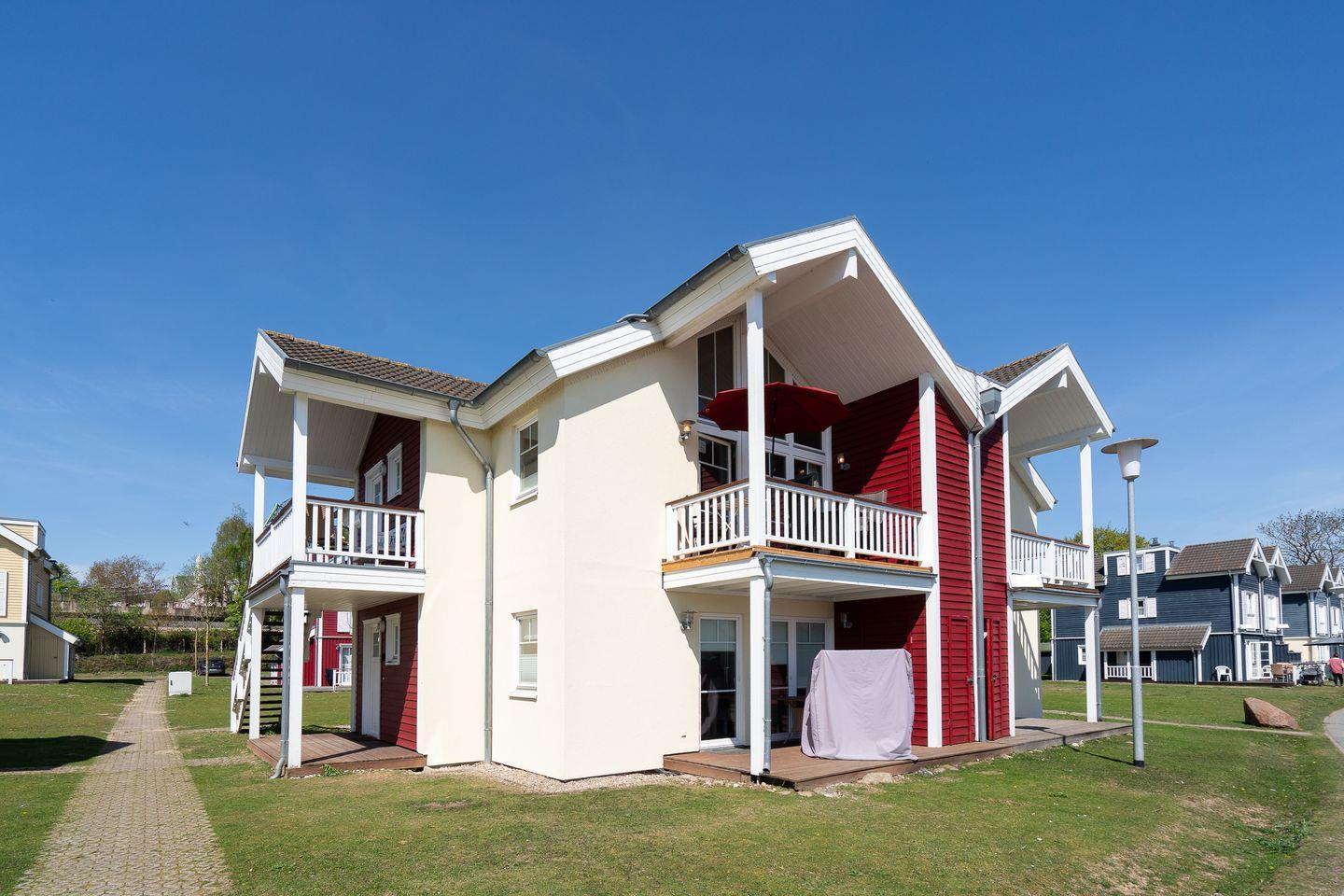 Die schöne Ferienwohnung „Brigantine“ Nr. 33 liegt in der 1. Etage eines Quattrobungalows mit separatem Eingang. Vom Wohn- und Essraum mit Kamin haben Sie Zugang zum Balkon. Hier haben Sie über die anderen Häuser hinweg Blick auf die Ostsee. Die offene Küche ist mit Spülmaschine, Backofen und Herd ausgestattet, zudem steht eine Waschmaschine zur Verfügung. Der 1. Schlafraum hat ein Doppelbett, im 2. stehen zwei Einzelbetten. Das Bad ist mit Badewanne und Sauna ausgestattet. WLAN inklusive.