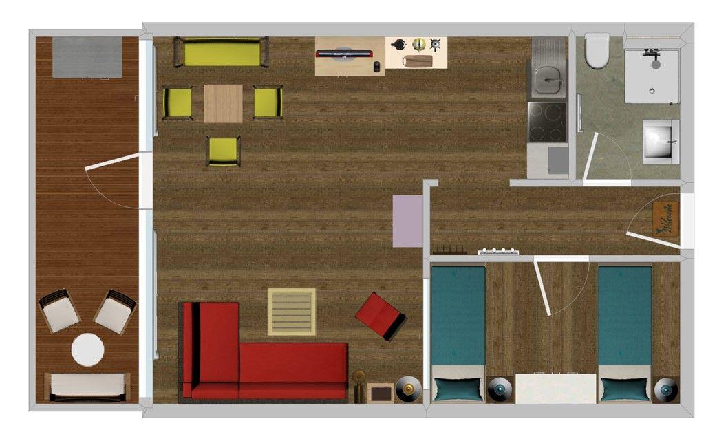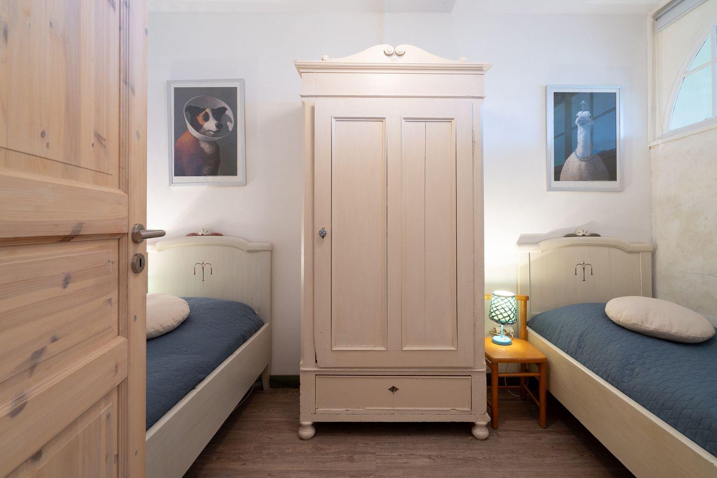 Das Schlafzimmer ist mit zwei getrennten Betten (80 cm x 195 cm) ausgestattet, die man nicht zusammenschieben kann.