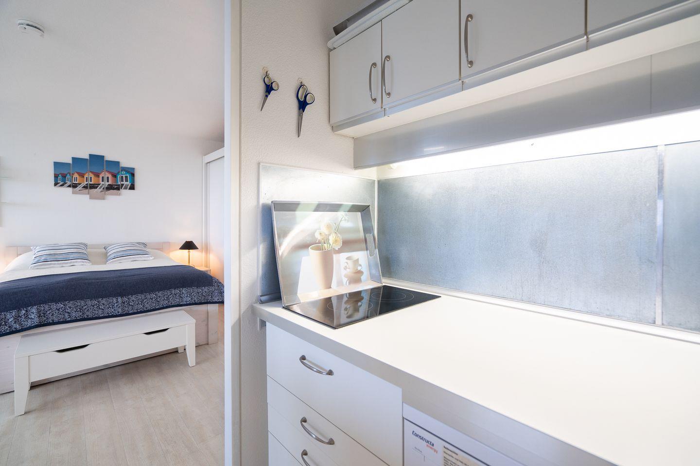 Hier wurde aus einer engen 2-Raum-Ferienwohnung eine geräumige und helle 1-Raum-Fereinwohnung zum Wohlfühlen geschaffen. Genießen Sie auf dem Balkon in Südlage den Blick über die Lübecker Bucht und freuen sich auf eine erholsame Urlaubszeit zu zweit. Die Küche mit Durchreiche zur Essecke ist mit Backofen, Herd und Spülmaschine ausgestattet. Ein bequemes Doppelbett (2 x 80 cm x 200 cm) sorgt für einen guten Schlaf. Das Duschbad ist innenliegend. Der PKW-Stellplatz ist inklusive und zudem haben Sie noch zwei extra Fahrradstellplätze in der Tiefgarage. Zum Strand sind es nur wenige Gehminuten.