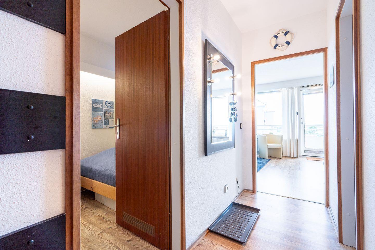 diese gemütliche 2-Raum-Ferienwohnung liegt in der Apartmentanlage Ferienpark in der 6. Etage mit einem möbliertem Nord-Ost-Balkon und Ostseeblick in die Neustädter Bucht. Die Wohnung ist ca. 40 m² groß und für 2- 4 Personen geeignet. Vom kombinierten Wohn- und Essbereich haben Sie Zugang zum Balkon. Die kleine Küche mit Backofen und Herd hat eine Durchreiche und ist zum Wohn-/Essbereich hin offen. Der Schlafraum ist innenliegend und mit getrennten Betten (2 x 90 cm x 190 cm) ausgestattet. Im Wohnraum befindet sich zudem ein Schlafsofa (140 cm x 200 cm. Das moderne Duschbad ist innenliegend. Zum Strand sind es nur wenige Gehminuten. PKW-Stellplatz inklusive.
