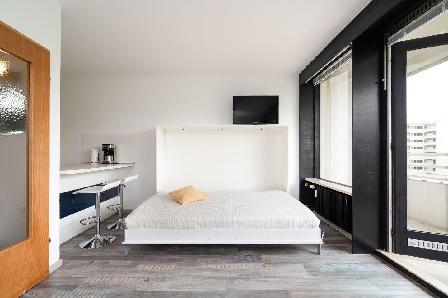 diese 1-Raum-Ferienwohnung liegt in der Apartmentanlage Ferienpark in der 3. Etage mit einem Balkon in Süd-West-Lage und seitlich etwas Meerblick. Die Wohnung ist ca. 33 qm groß. Im kombinierten Wohn- und Schlafraum mit Sofaecke steht Ihnen ein Schrankbett (1,40x2,00m) zur Verfügung. Die moderne Küche ist mit Spülmaschine, Backofen und Herd ausgestattet und hat einen Esstresen, der zum Wohnraum hin offen ist. Das Duschbad ist innenliegend. Zum Strand und zur Promenade sind es nur wenige Gehminuten. PKW-Stellplatz inklusive.