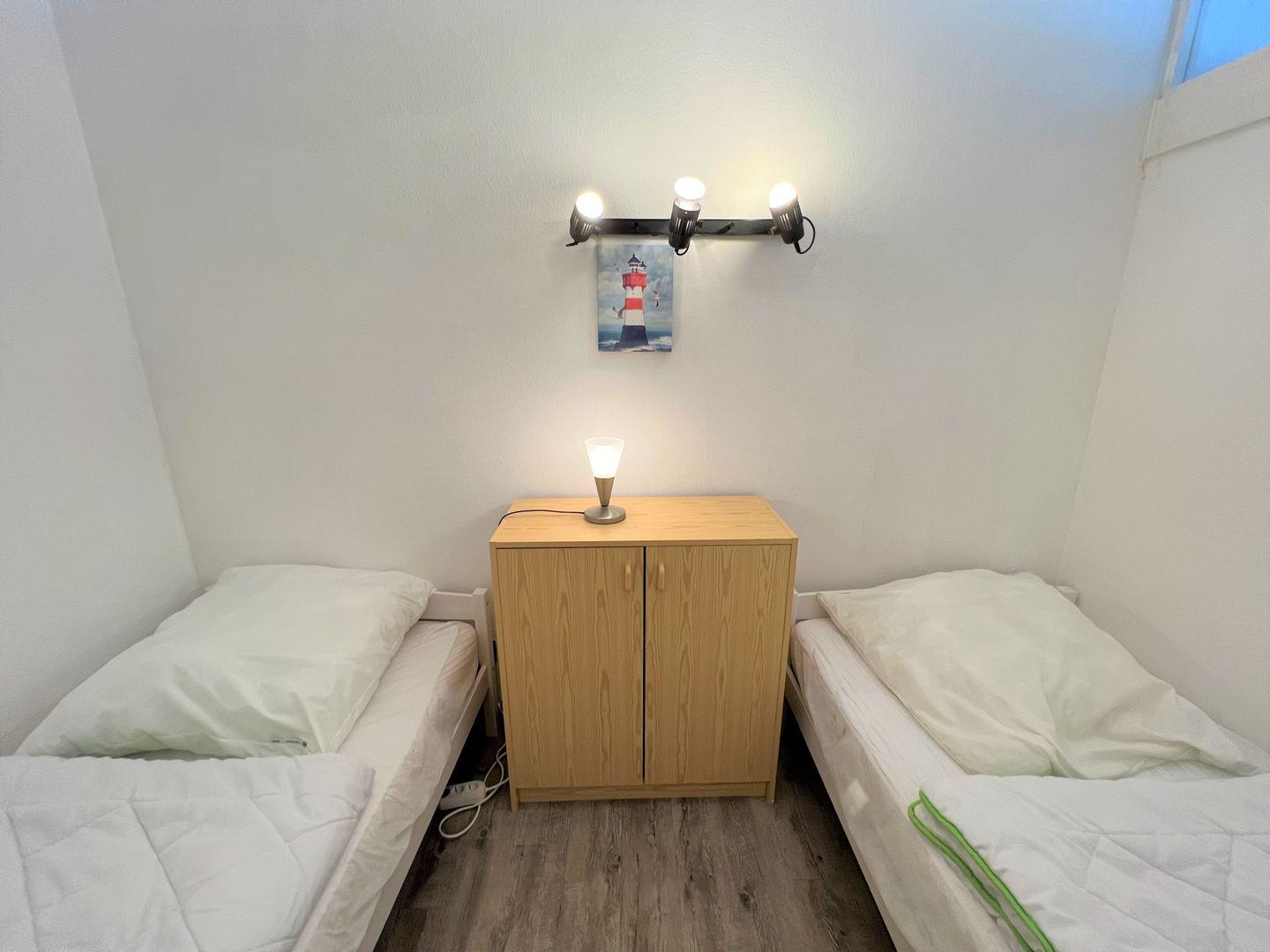 Die Ferienwohnung liegt in der 5. Etage mit Balkon in Süd-West-Lage und etwas seitlichem Blick auf die Ostsee über die Wohnanlage hinweg. Vom kombinierten Wohn- und Essbereich haben Sie Zugang zum Balkon. Die kleine Küche ist mit einer Durchreiche zum Wohn-/Essbereich hin offen und mit Backofen und Herd ausgestattet. Im (Kinder)schlafraum befinden sich 2 Einzelbetten, jeweils mit den Maßen 90 cm x 190 cm. Im Schlafraum ist kein Platz, um ein Kinderreisebettchen aufzustellen. Im Wohnraum kann man zusätzlich die Couch ausziehen (140 cm x 190 cm). Das modernisierte Duschbad ist innenliegend. Zum Strand sind es nur wenige Gehminuten. PKW-Stellplatz inklusive.