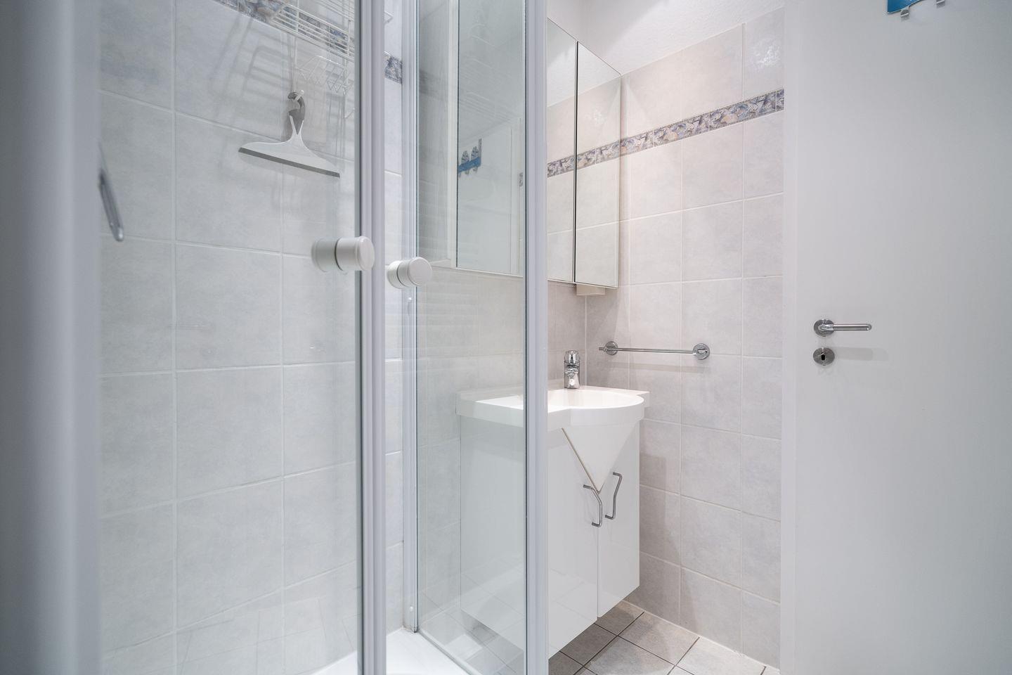 die geräumige 1-Raum-Ferienwohnung mit Balkon in Süd-Ost-Lage ist für maximal 2 Personen ausgestattet. Die Küche ist zum Ess- und Wohnbereich offen und mit Spülmaschine, Backofen und Herd ausgestattet. Das Doppelbett (2x 90 cm x 200 cm) kann mit einem Vorhang optisch vom gemütlichen Wohnraum getrennt werden. Es gibt ein innenliegendes, helles Duschbad. PKW-Stellplatz inklusive. Zum Strand sind es nur wenige Fußschritte.