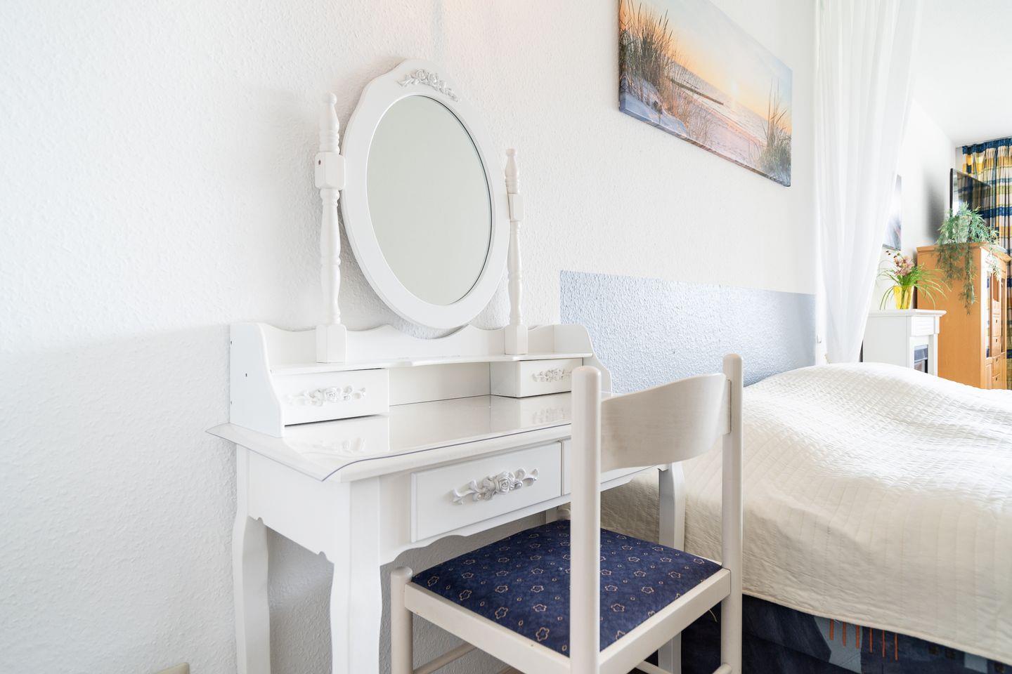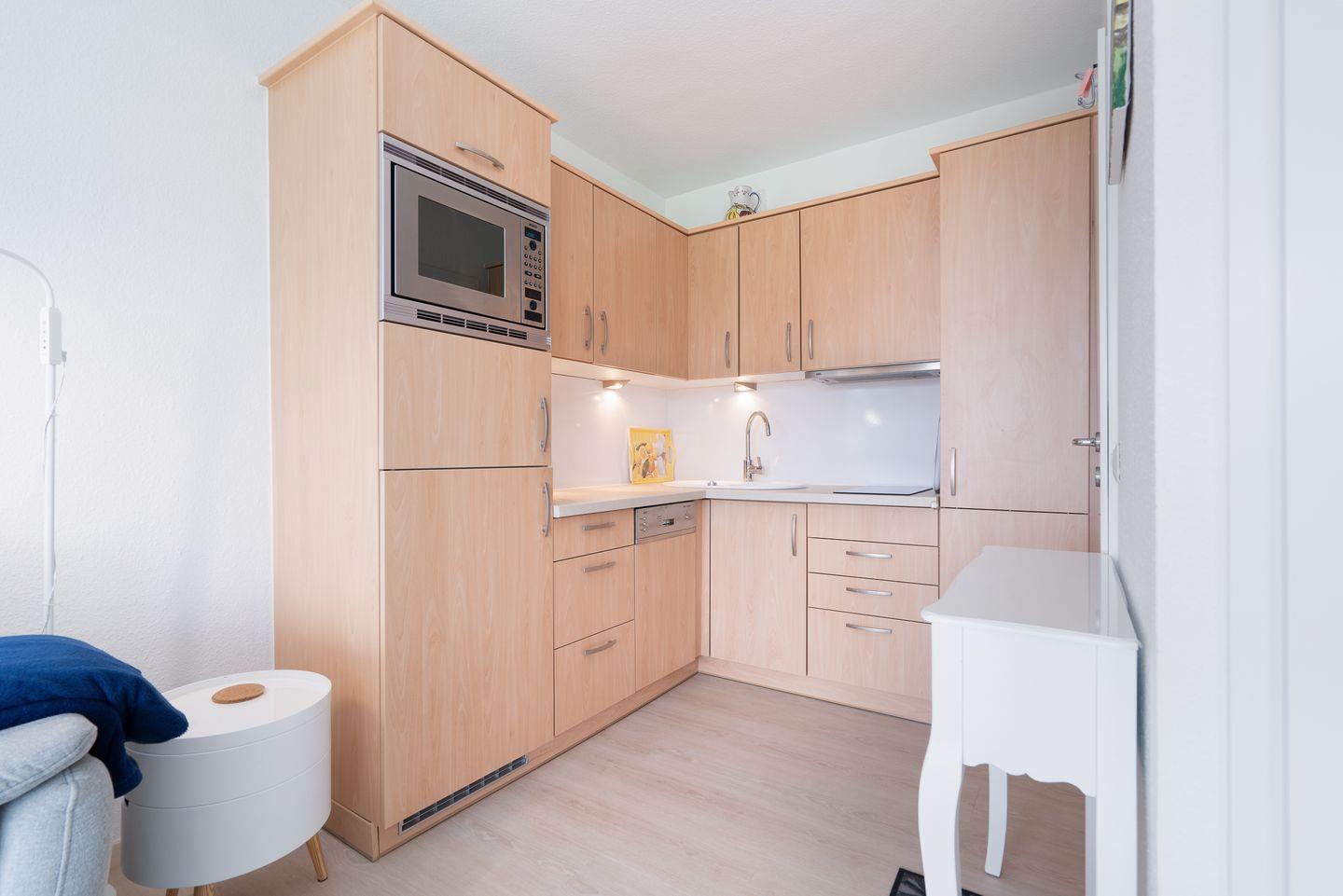 Die Ferienwohnung Nr. 564 wurde 2021 renoviert und zu einem geräumigen 1-Raum-Appartment umgebaut. Vom gemütlichen Wohnraum haben Sie Zugang zum Balkon im Süd-Ost-Lage. Die Küche ist in den Wohnraum integriert und mit Spülmaschine, Backofen und Herd ausgestattet. Die Wohnung verfügt über ein Doppelbett, das optisch mit einem Vorhang vom Wohnraum abgetrennt werden kann. Es gibt ein innenliegendes Duschbad. PKW-Stellplatz inklusive. Zum Strand sind es nur wenige Fußschritte.