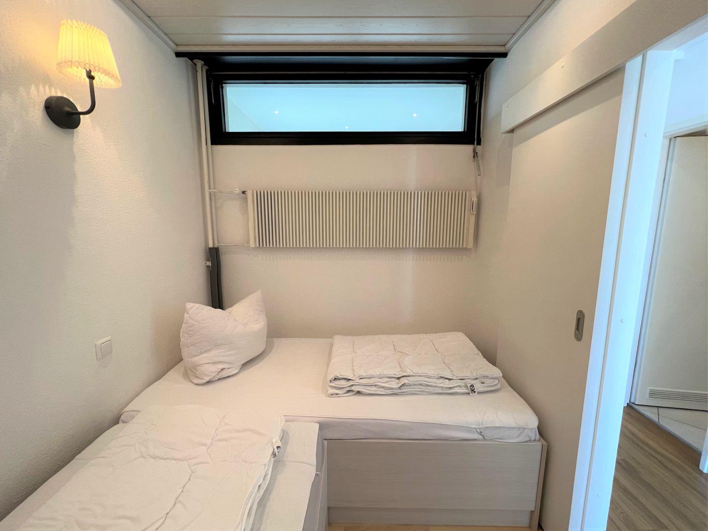 die Wohnung befindet sich im Hochhaus im Hochparterre mit Balkon zur Plaza in Süd-Ost-Lage und etwas Ostseeblick über den Platz hinweg. Die mit Spülmaschine, Backofen und Herd ausgestattete, moderne Küche ist in den kombinierten Wohn- und Essbereich integriert. Im Schlafraum befinden sich 2 Einzelbetten (jeweils 90 cm x 190 cm), die über Eck stehen und nicht zusammenzuschieben sind. Im Schlafraum ist kein Platz, um ein Kinderreisebett aufzustellen. Im Wohnraum finden Sie zudem eine Schlafcouch (190 cm x 220 cm). Es gibt ein modernisiertes Duschbad mit Oberlicht zum Lüften. Ohne eine Straße überqueren zu müssen, sind es zum Strand nur wenige Schritte zu Fuß. PKW-Stellplatz inklusive.