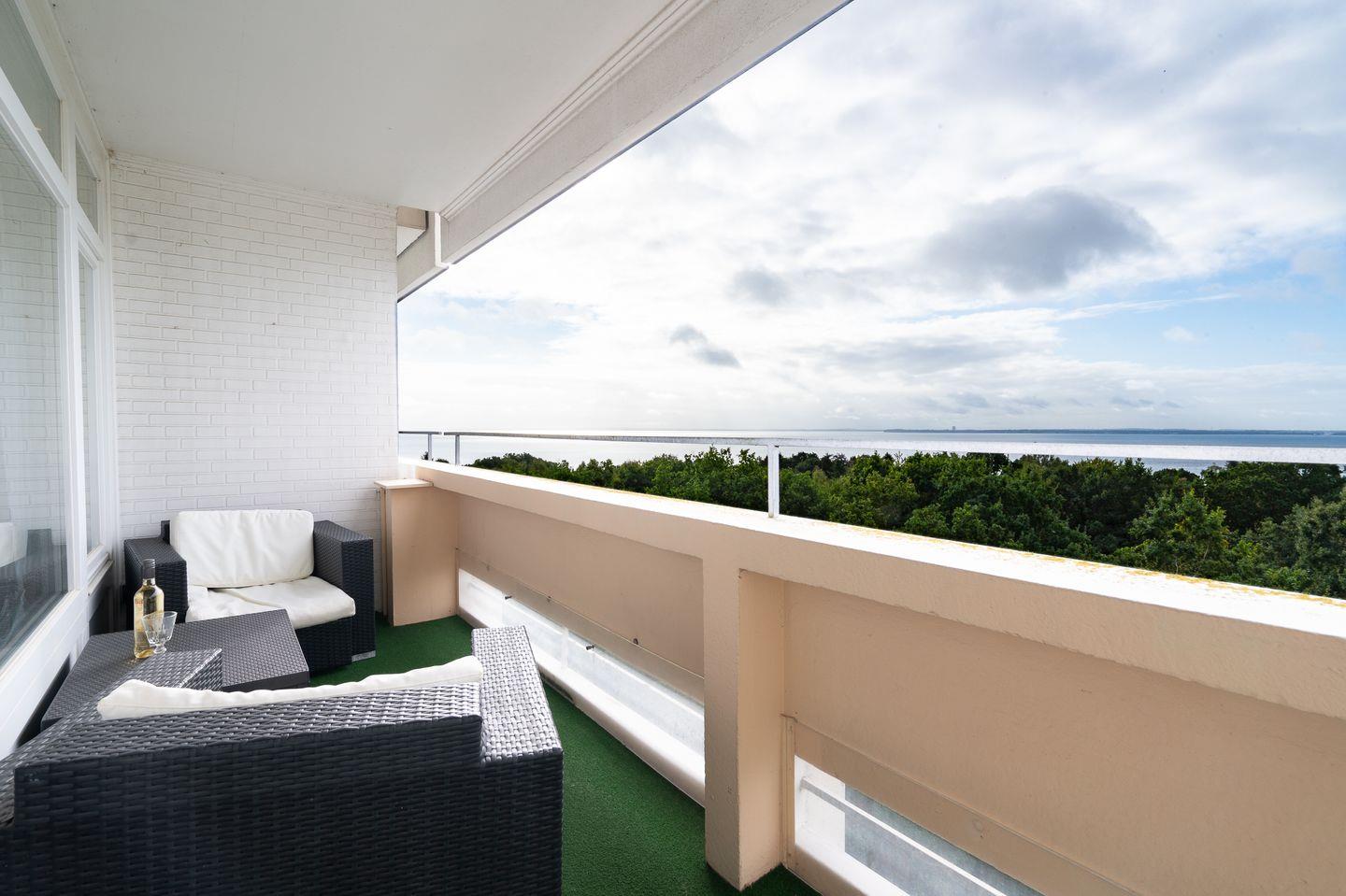 Die 2-Raum-Ferienwohnung liegt in sonniger Südlage in der 6. Etage mit Balkon und traumhaften Blick über die Lübecker Bucht. Die voll ausgestatte Küche ist in den kombinierten Wohn- und Essraum integriert. Im Schlafraum steht ein Doppelbett. Auf der Schlafcouch im Wohnraum könnte eine weitere Person schlafen. Das moderne Duschbad ist innenliegend. WLAN inklusive. Die Nutzung des Schwimmbads in der Anlage ist inklusive.