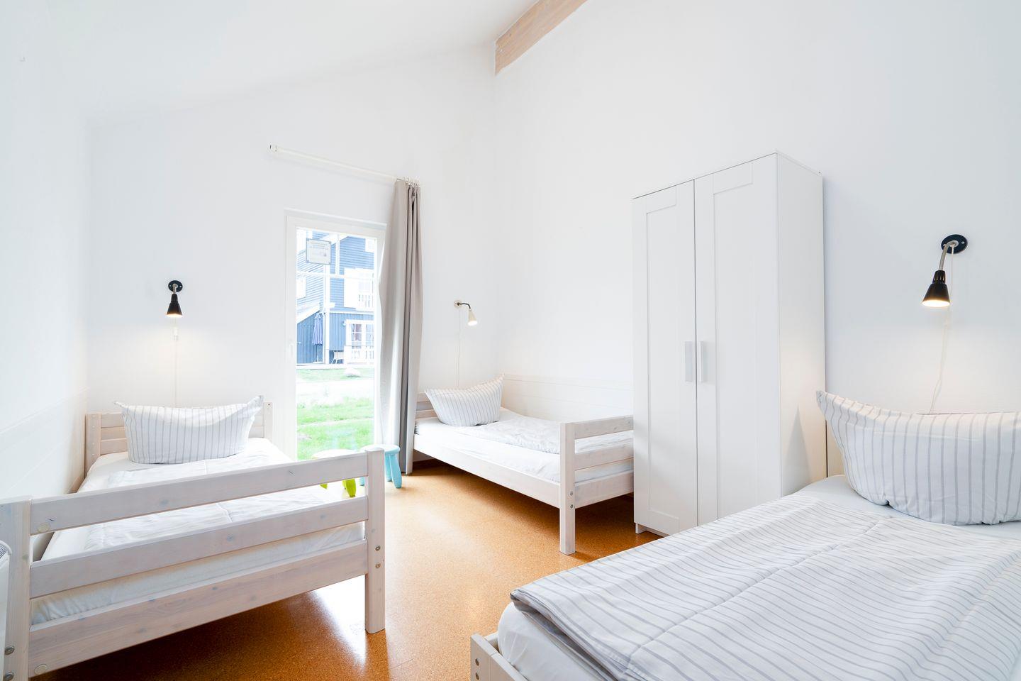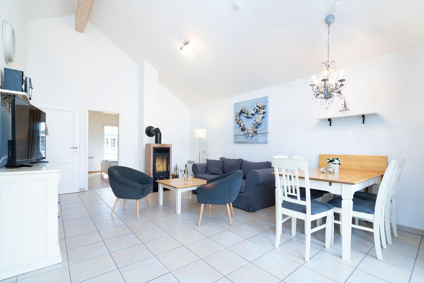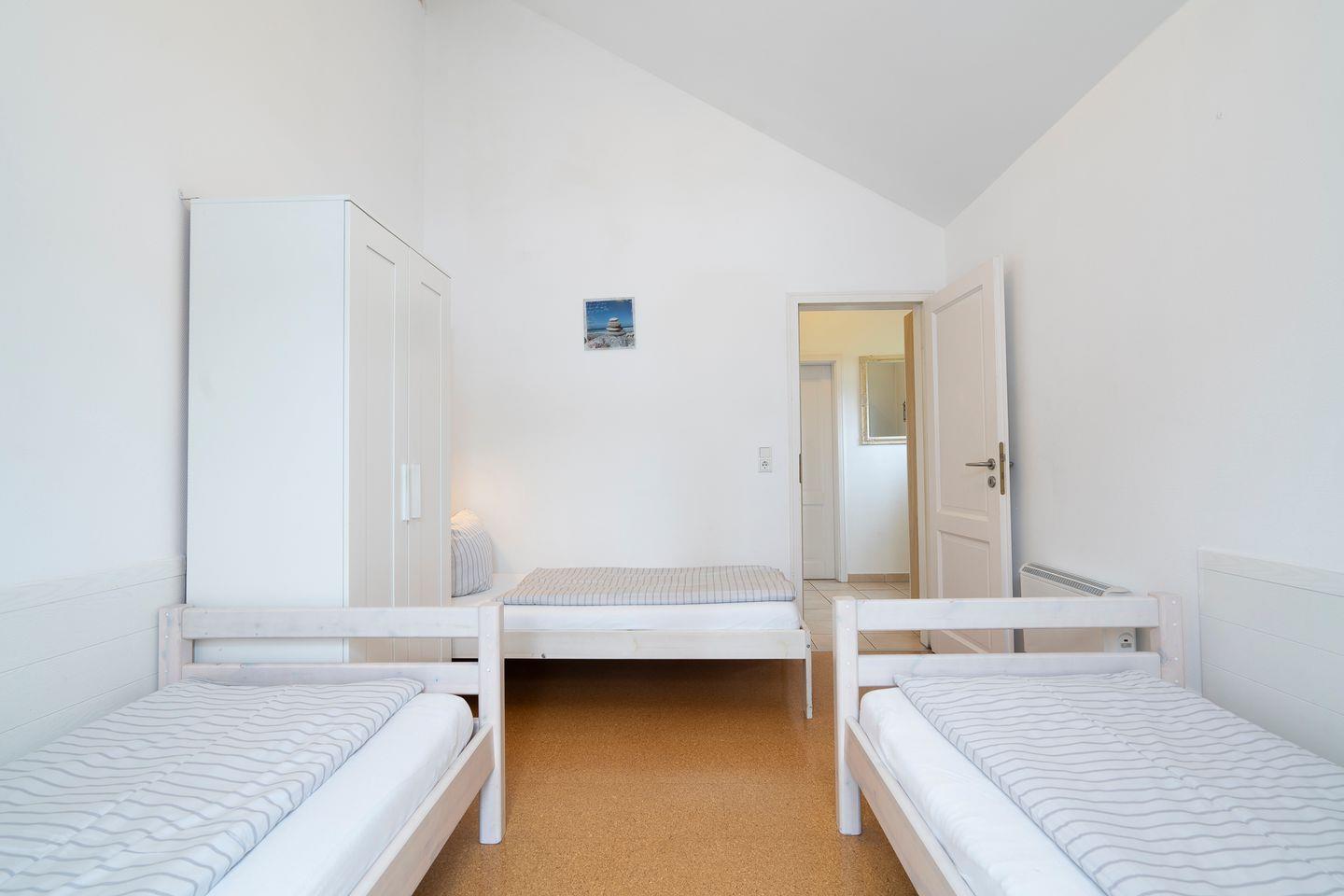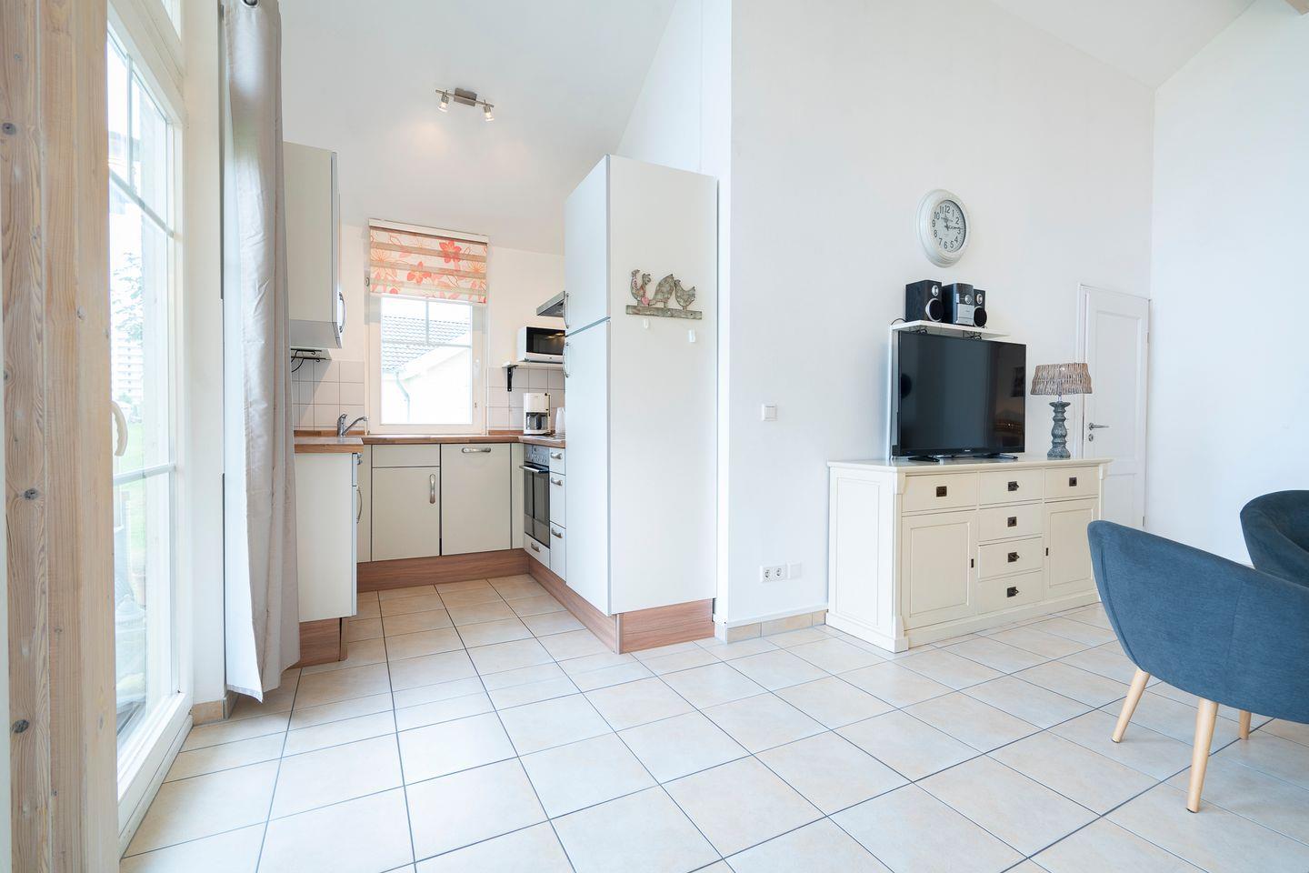 Die gemütliche Bungalowhälfte Nr. 59 liegt in der Strandpark-Anlage und ist für bis zu 5 Personen geeignet. Vom geräumigen Wohnraum mit Kamin und offener Küche haben Sie Zugang zur Terrasse. Die Küche ist mit Spülmaschine, Backofen und Herd ausgestattet. Im ersten Schlafraum steht ein Doppelbett, im zweiten Schlafraum stehen drei Einzelbetten. Das Bad ist mit Dusche, Sauna und Waschmaschine ausgestattet. WLAN ist inklusive.