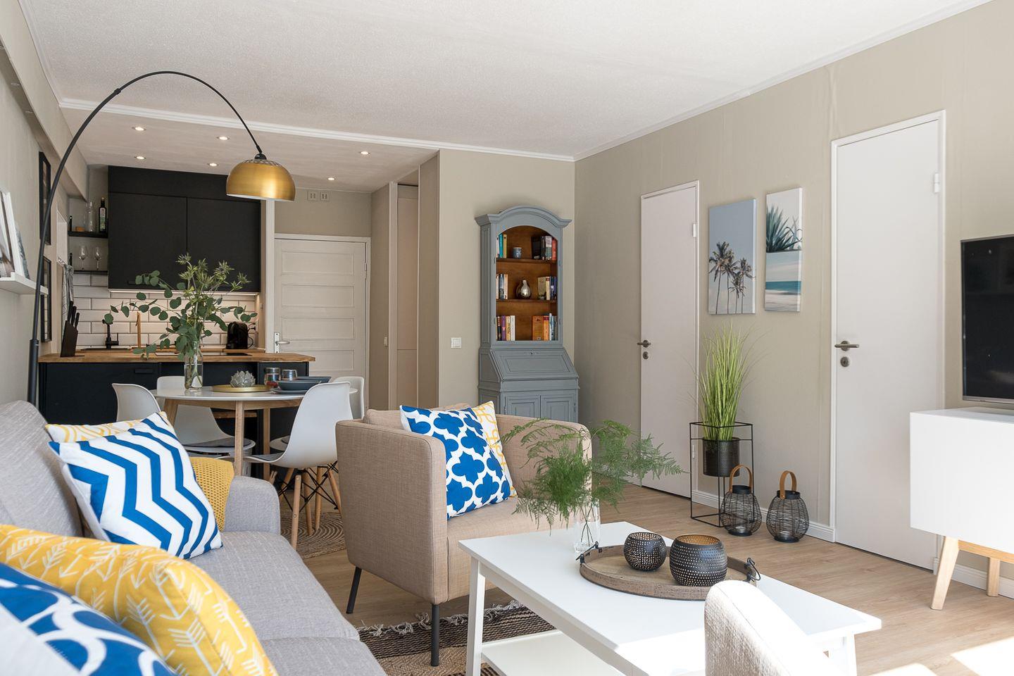 Moderner und gemütlicher Wohn- und Essbereich sowie offene Küche mit Backofen, Geschirrspüler, Kaffeemaschine, Waschtrockner, Kühlschrank und Equipment für 4-6 Personen.