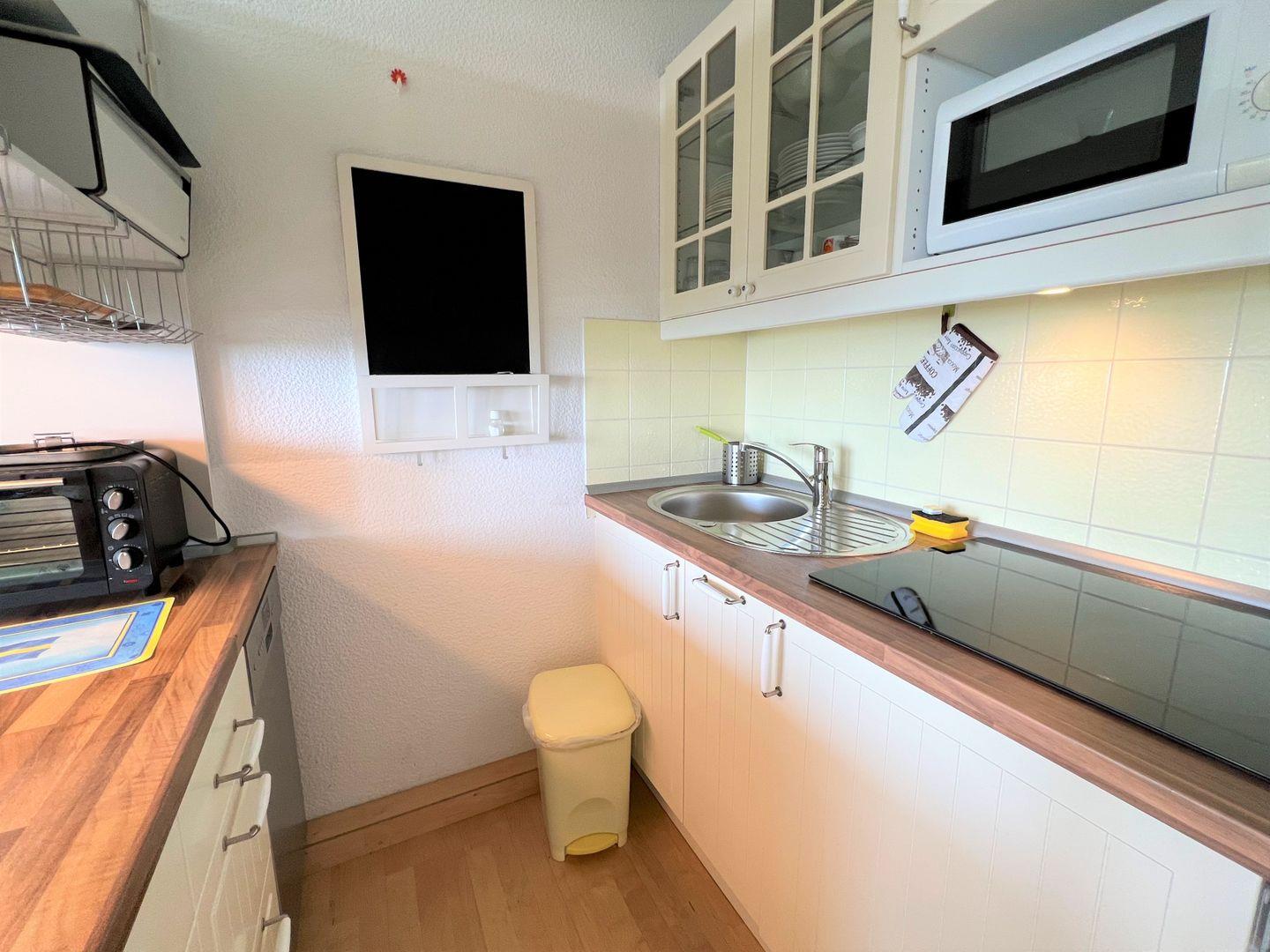 Die 2-Raum-Ferienwohnung befindet sich in Südlage im 9. Stock mit Balkon und wunderschönen Blick über die Lübecker Bucht. Die kleine, aber gut ausgestattete Küche ist mit einer Durchreiche zu kombinierten Wohn- und Essbereich hin offen. Im innenliegenden Schlafraum steht ein Doppelbett. Auf der Schlafcouch im Wohnraum ist Platz für 2 weitere Personen. Das Duschbad ist ebenfalls innenliegend. Die Nutzung des Schwimmbads in der Anlage ist inklusive.
