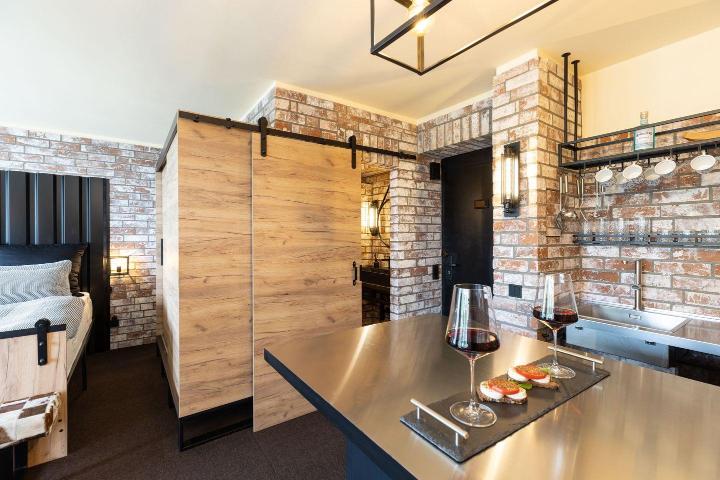 Die außergewöhnliche 1-Raum-Ferienwohnung Nr. 641 im Industrial Style-Look liegt in der 2. Etage mit einem Nord-West-Balkon mit eingeschränktem Teil-Meerblick. Im kombinierten Wohn- und Schlafraum finden Sie ein Doppelbett, in das man seitlich einsteigen kann. Die Küchenzeile ist zum Wohn- und Schlafbereich hin offen und ist mit Backofen und Herd ausgestattet. Das geschmackvolle Duschbad ist modern und innenliegend. Der Strand ist nur wenige Gehminuten entfernt.