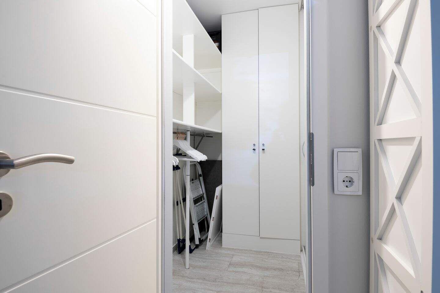Gleich nebenan können Sie Ihre Urlaubsgarderobe in dem extra dafür vorgesehenen Ankleidezimmer verstauen. Ein Einbauschrank, Regale und eine Garderobe bieten genug Stauraum für Ihre Urlaubsbekleidung.