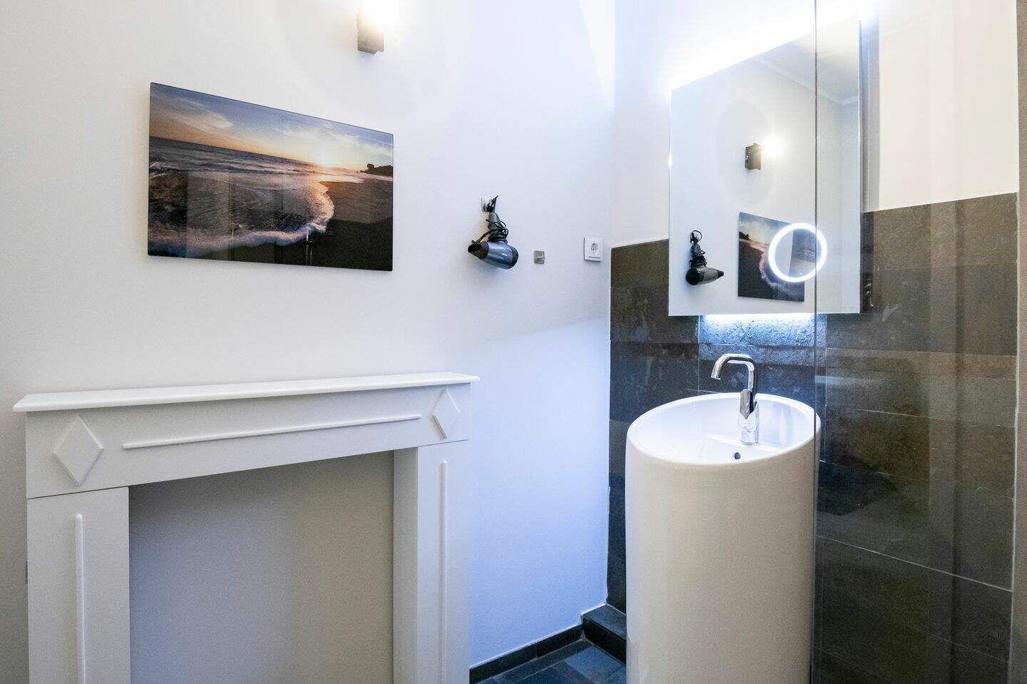 Das hochwertige und moderne innenliegende Designerbad ist mit WC, Dusche und beheizbarem Handtuchhalter ausgestattet.