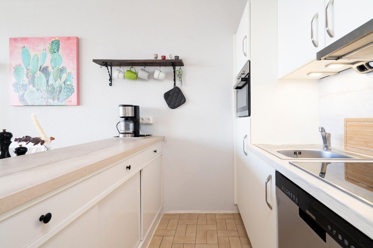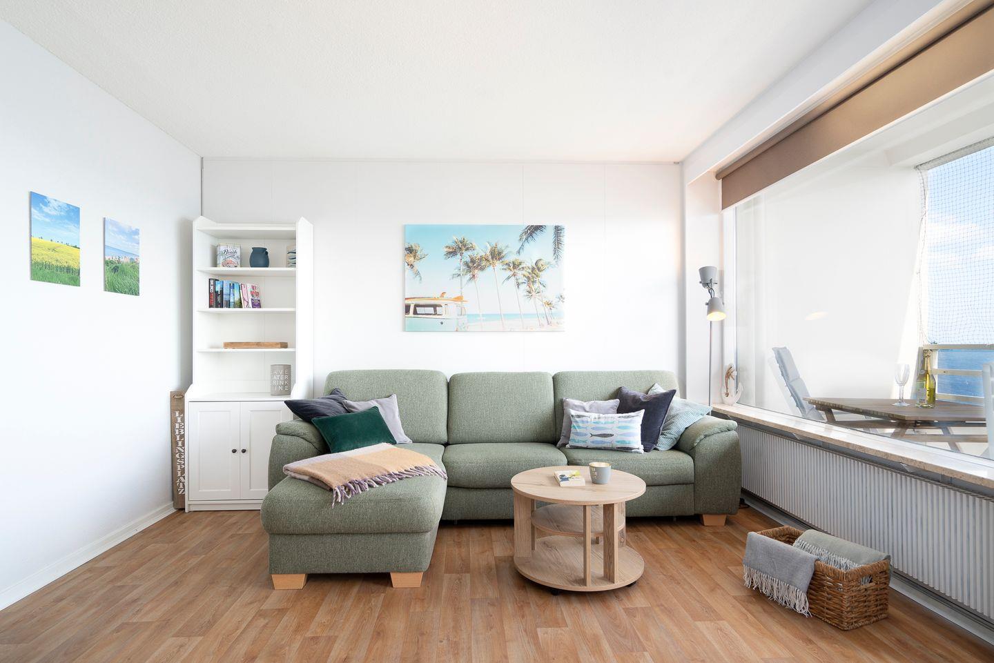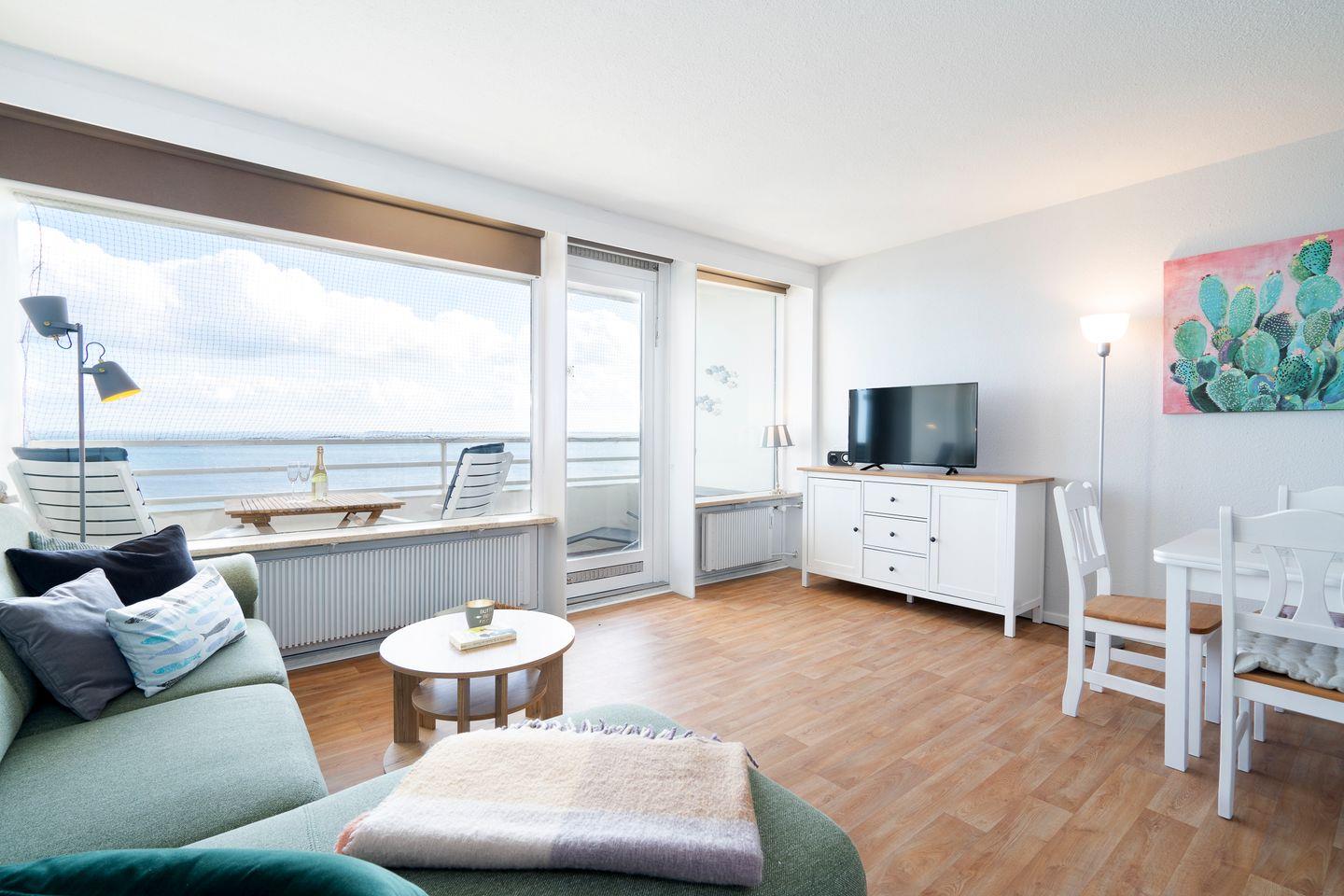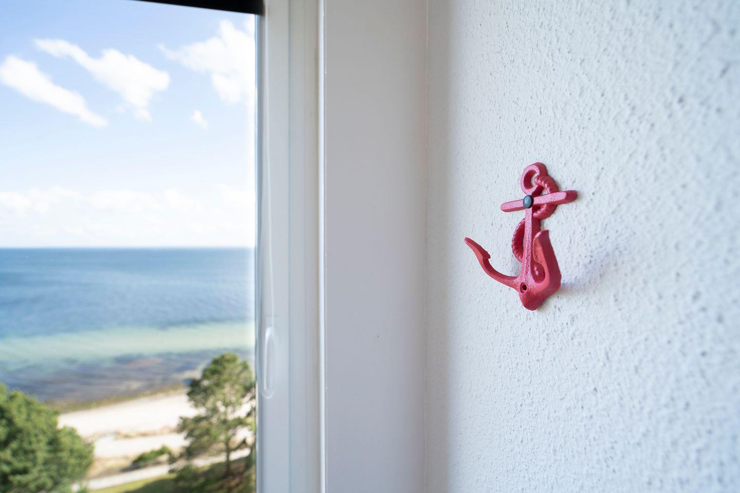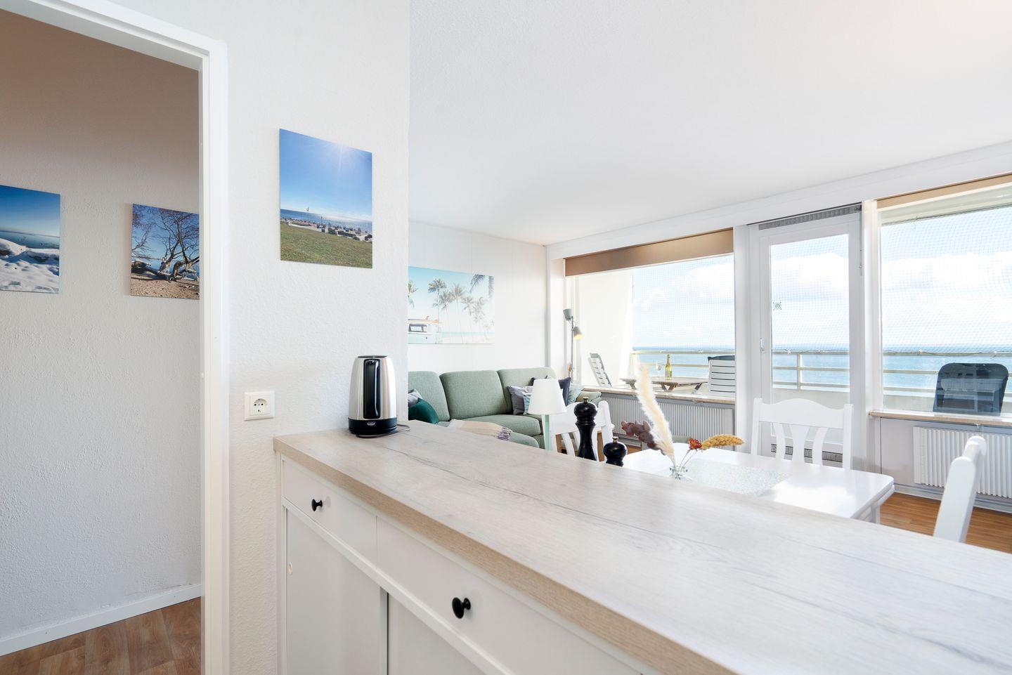 dieses im Jahr 2023 renovierte Feriendomizil befindet sich in der 6. Etage in 1. Reihe an der Ostsee. Vom gemütlichen und liebevoll eingerichteten Wohn- und Essbereich haben Sie Zugang zum Balkon mit herrlichem Ostseeblick. Die kleine, aber mit Spülmaschine, Backofen und Herd voll ausgestattete Küche ist offen zum Wohn-/Essbereich. Das Schlafzimmer hat ein Doppelbett (200 cm x 200 cm) und ein Fenster mit toller Sicht auf die Ostsee. Im Wohnzimmer steht ein Schlafsofa (120 cm x 200 cm). Das modernisierte Duschbad ist innenliegend. Zum Strand und zur Promenade sind es nur wenige Schritte. PKW-Stellplatz im Parkdeck, es führen Treppen von dort aus zur Wohnung. Über einen Seiteneingang gelangt man zum Fahrstuhl für ebenerdiges Be-und Entladen.