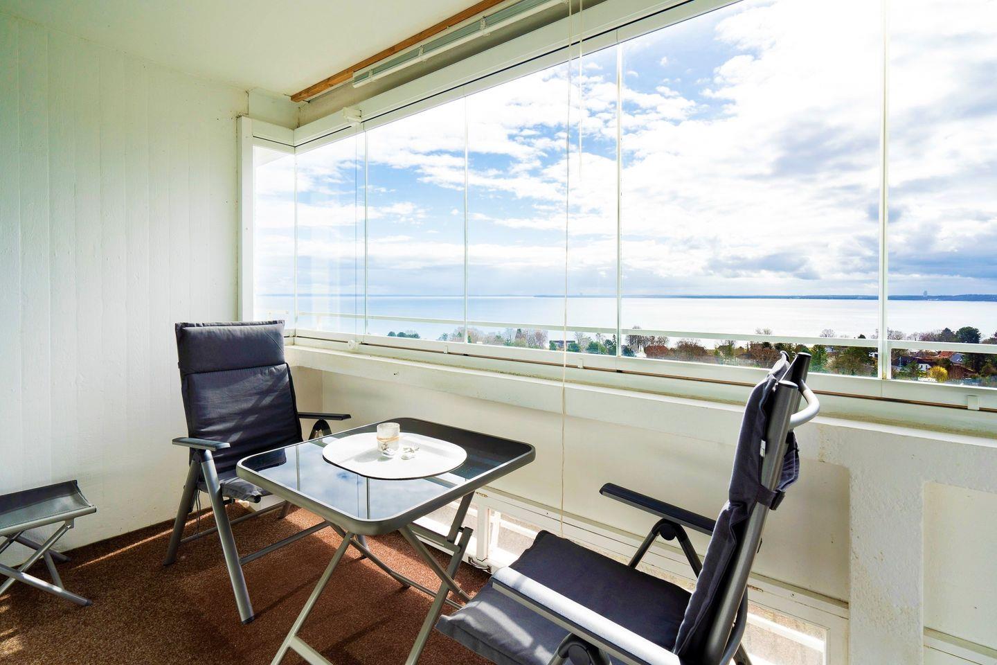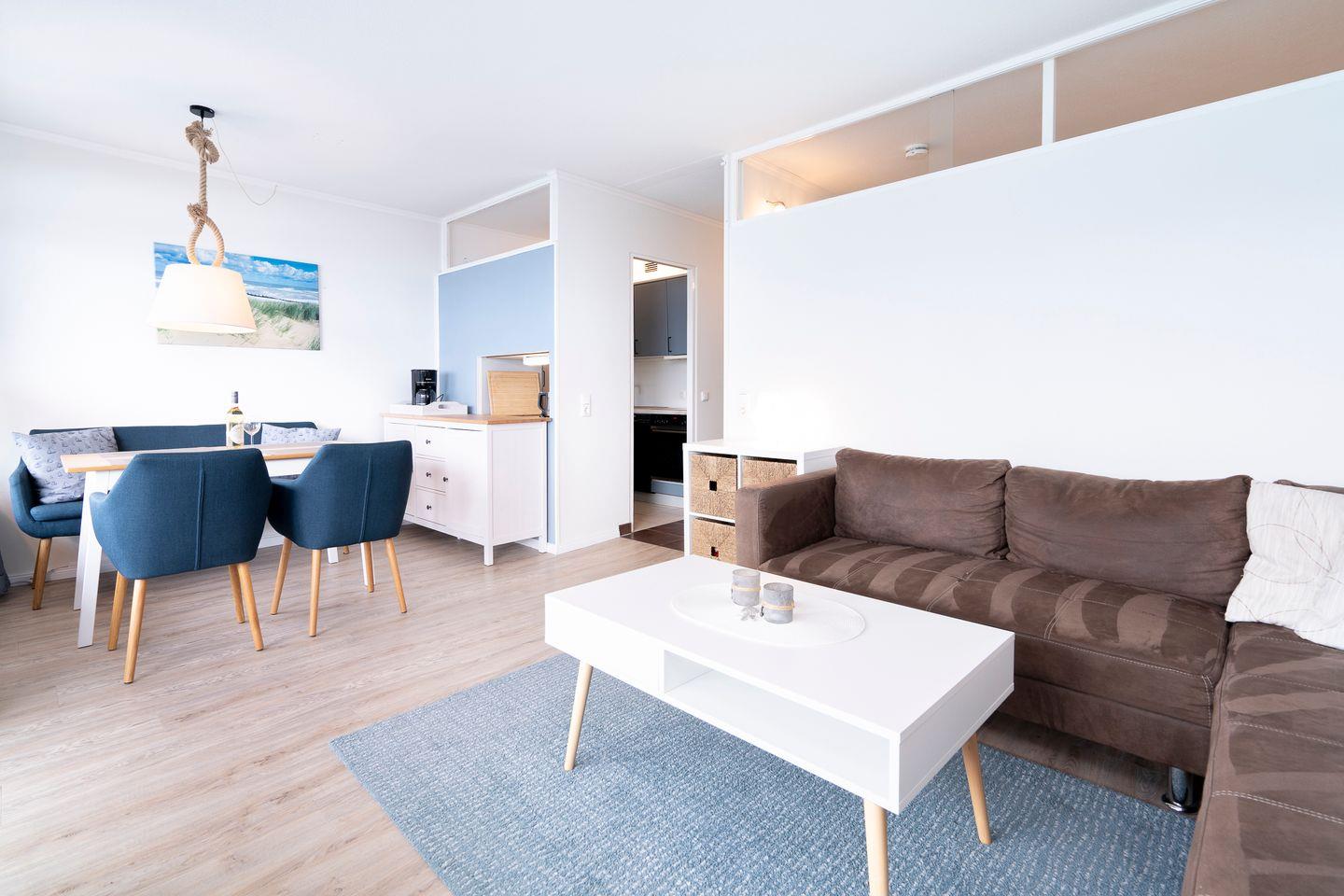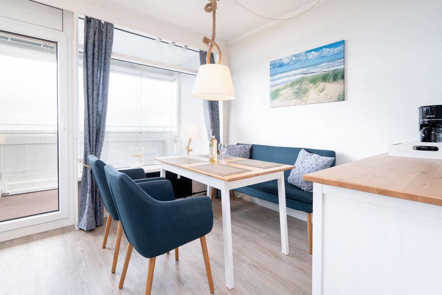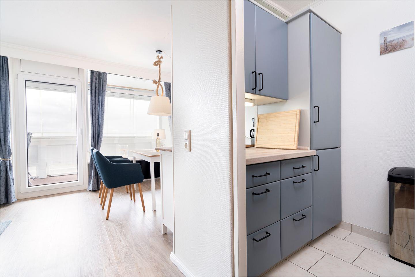 Diese moderne und mit maritimen Elementen eingerichtete 2-Raum-Nichtraucherwohnung befindet sich in sonniger Südlage im 10. Stock des Hauses A der Ferienanlage "Panoramic" in Sierksdorf. Die Ferienanlage liegt in unmittelbarer Nähe des Hansa-Parks und ist nur wenige Meter vom Strand entfernt. Vom Balkon aus haben Sie einen atemberaubenen Ausblick über die gesamte Lübecker Bucht bis hin nach Travemünde. Die Küche ist mit Herd, Mikrowelle und Spülmaschine ausgestattet und mit einer kleinen Durchreiche zum kombinierten Wohn- und Essbereich hin offen. Im innenliegenden Schlafraum steht ein Bett (160 cm x 200 cm) und ein Kleiderschrank. Das Schlafsofa (130 cm x 200 cm) im Wohnzimmer bietet Platz für eine dritte Person. Es steht Ihnen ein hell gefliestes, innenliegendes Duschbad zur Verfügung. EIne eigene Waschmaschine gehört ebenfalls zur gehobenen Ausstattung der Wohnung. PKW-Stellplatz inklusive.